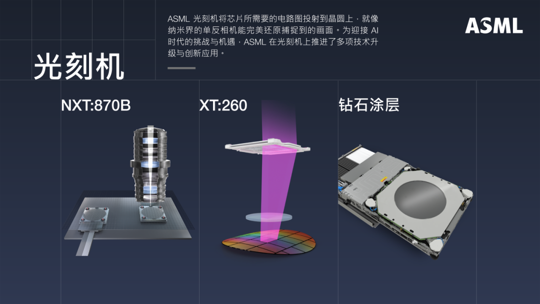 o XT:260 - ASML首款可服务于先进封装领域的光刻系统,具有大视场曝光,相较于现有机型可提高4倍生产效率,能够有效提升性能并降低单片晶圆成本,可支持从先进封装到主流市场的广泛应用。