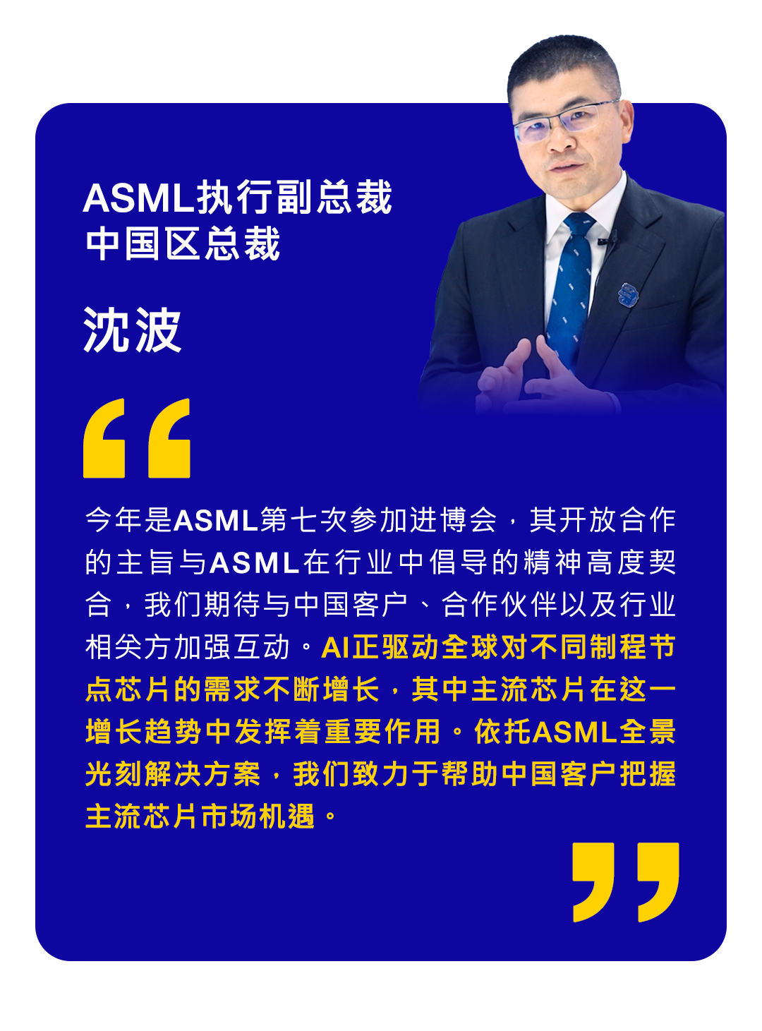 ASML全球执行副总裁、中国区总裁沈波先生