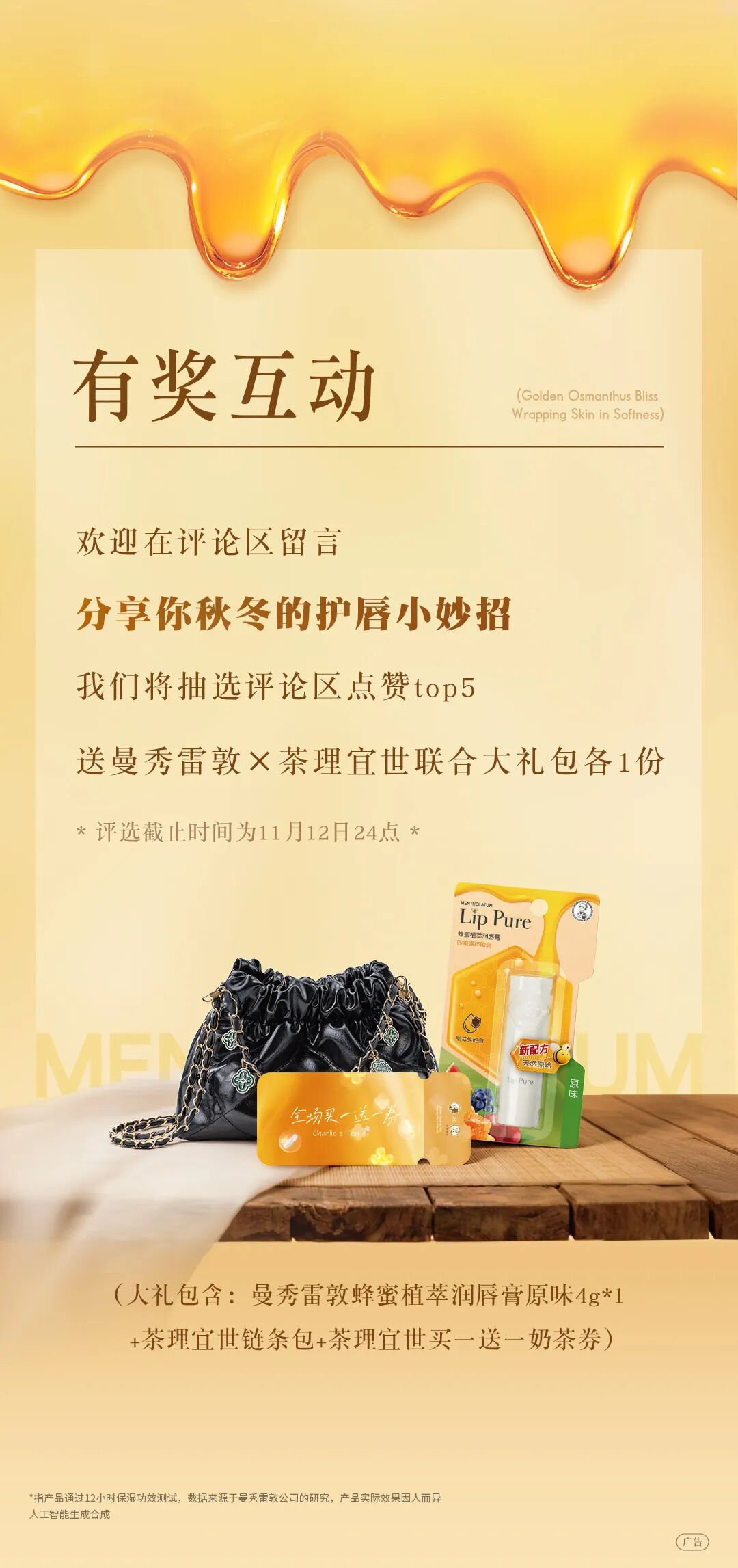 文章内容来源于公众号:曼秀雷敦,点此可查看原文,内容版权归相关企业所有,本网站仅供交流学习。若涉及版权问题或存在侵权情况,请及时与我们联系,我们将第一时间进行删除处理。