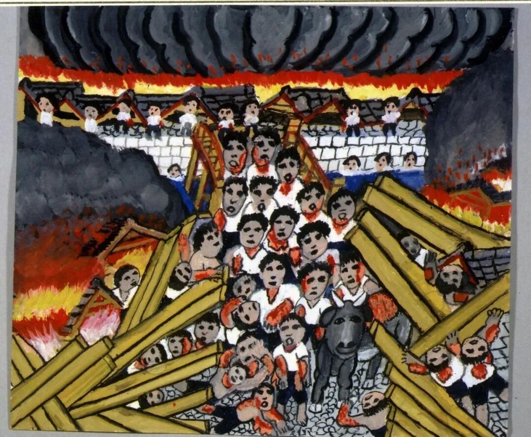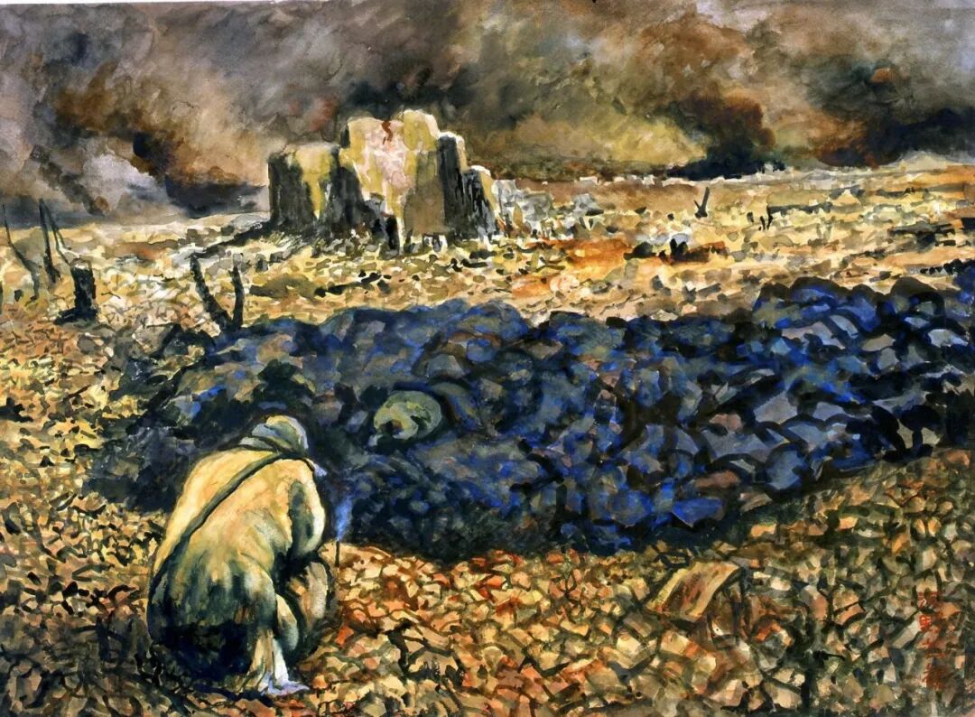 【第一幅畫大約創作於1974/75年,第二幅畫大約創作於2003年,描繪的是同一場景。第一幅畫的介紹文字較簡略,內容也基本包含在第二幅的介紹中,所以本文只收錄了第二幅的介紹文字】