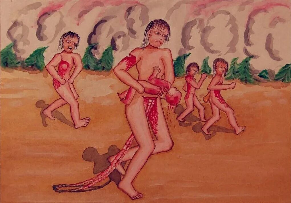 四、到了第三天被燒者屍體變成紅色,就像赤鬼的樣子,看到就不由自主轉過臉去