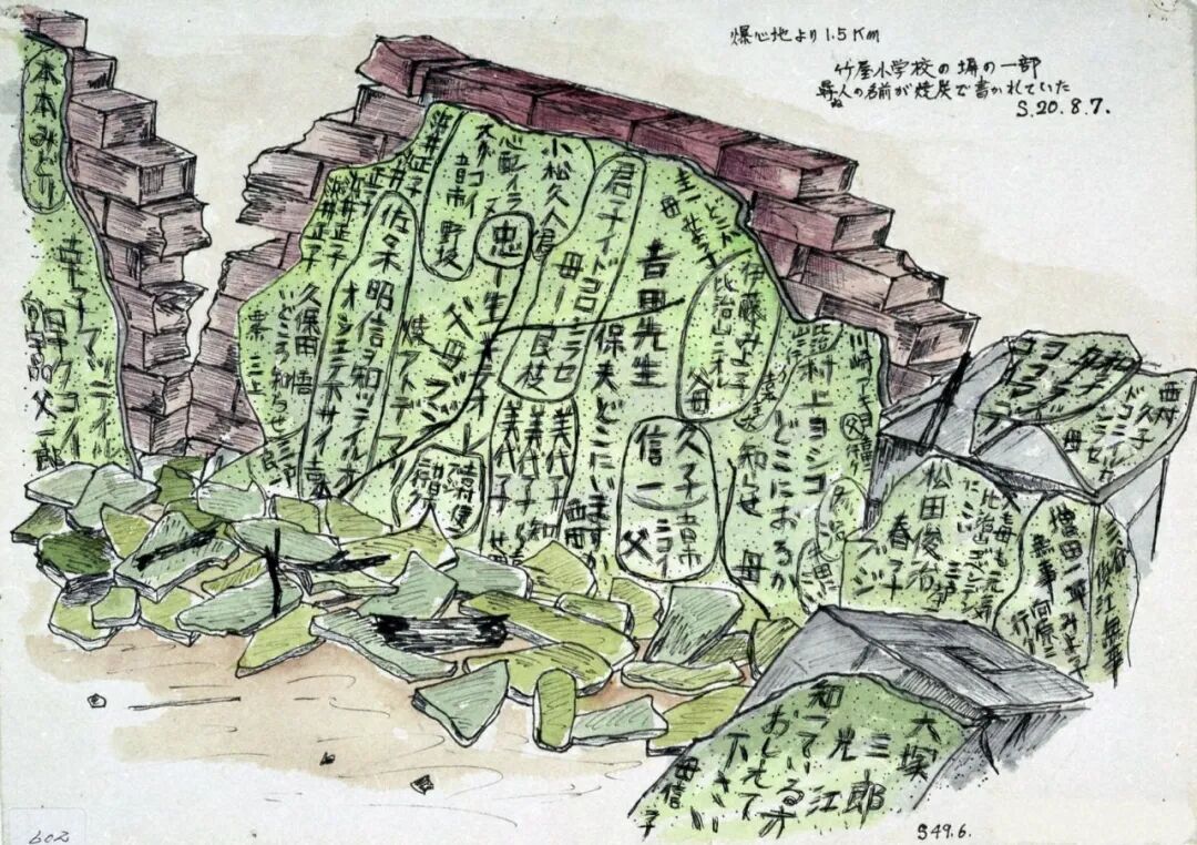 西村久子 你在哪裏 告訴我——媽媽/和子 一定要來這裏/三谷俊江平安/増田一平 みよ子平安去向原了/爸爸媽媽都沒事 來比治山御便殿 三戸孝一/松田俊治 春子平安/川崎アキヨ 爸爸去吉田了/修治 來牛田/村上ヨシコ人在哪告訴我——母/去比治山 吉本圭次/伊藤みよ子 父母在比治山/久子 信一 來五日市——爸爸/圭一你在哪——媽媽 みよ子/吉田老師 保夫在哪裏——西田/君子告知所在——母-良枝/美代子美代子美代子告訴我——吉田/小松久人你不用擔心來馬上來五日市——野坂/忠 要活著 父母平安 在災墟等你/吉村健一平安去廿日市/知道佐々木昭信在哪的人請告訴我——吉本/浜井正子浜井正子浜井正子浜井正子/久保田悟人在哪告訴我——西条、三上/三戸良一/本本みどり/幸子 在等你 快來——向宇品父一郎/大塚三郎、光江 知道的人請告訴我——母信子