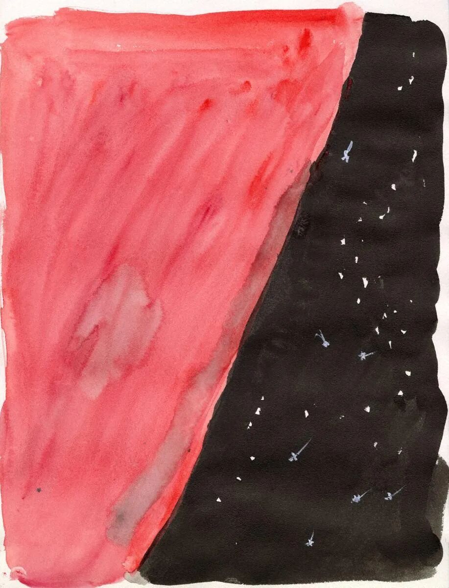 8月6日遭受核爆,家倒塌了。該說是在野外的平地上露營嗎,總之就是在外面睡覺。我後來還會想起那時看到的天空。廣島的天空清楚地分成了兩個,遭受核爆的西北方向,天空是被燒得鮮紅的血色;東南方向,是整片的星空,無數流星劃過。我看到這些,心想,那流星⋯⋯是死去的人們的靈魂嗎,或許是他們正在昇天的樣子。我邊想邊流淚,遠眺天空。我有這樣的記憶。大概有兩晚、三晚都是這樣的狀態。[...]