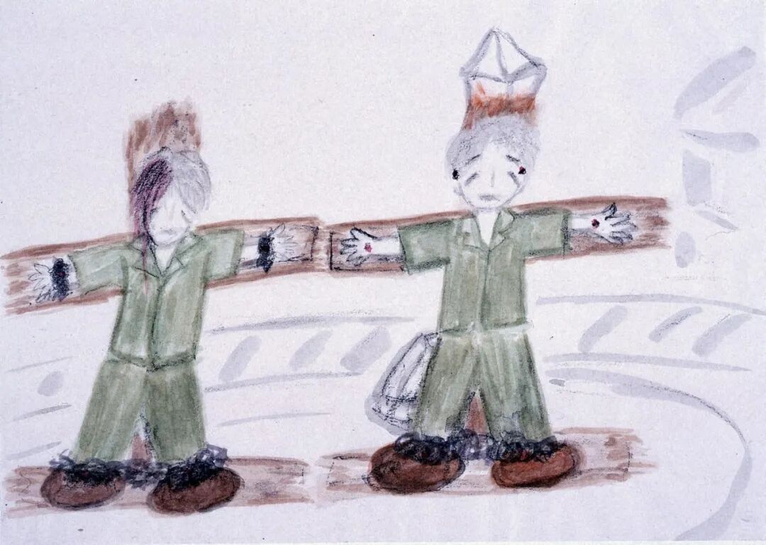 臉上塗了油,好像人被放到天婦羅油裏炸過一樣,慘不忍睹。衣服似乎沒有太破,但他們是不是活著,我不知道。每個人臉都差不多,無法區別。