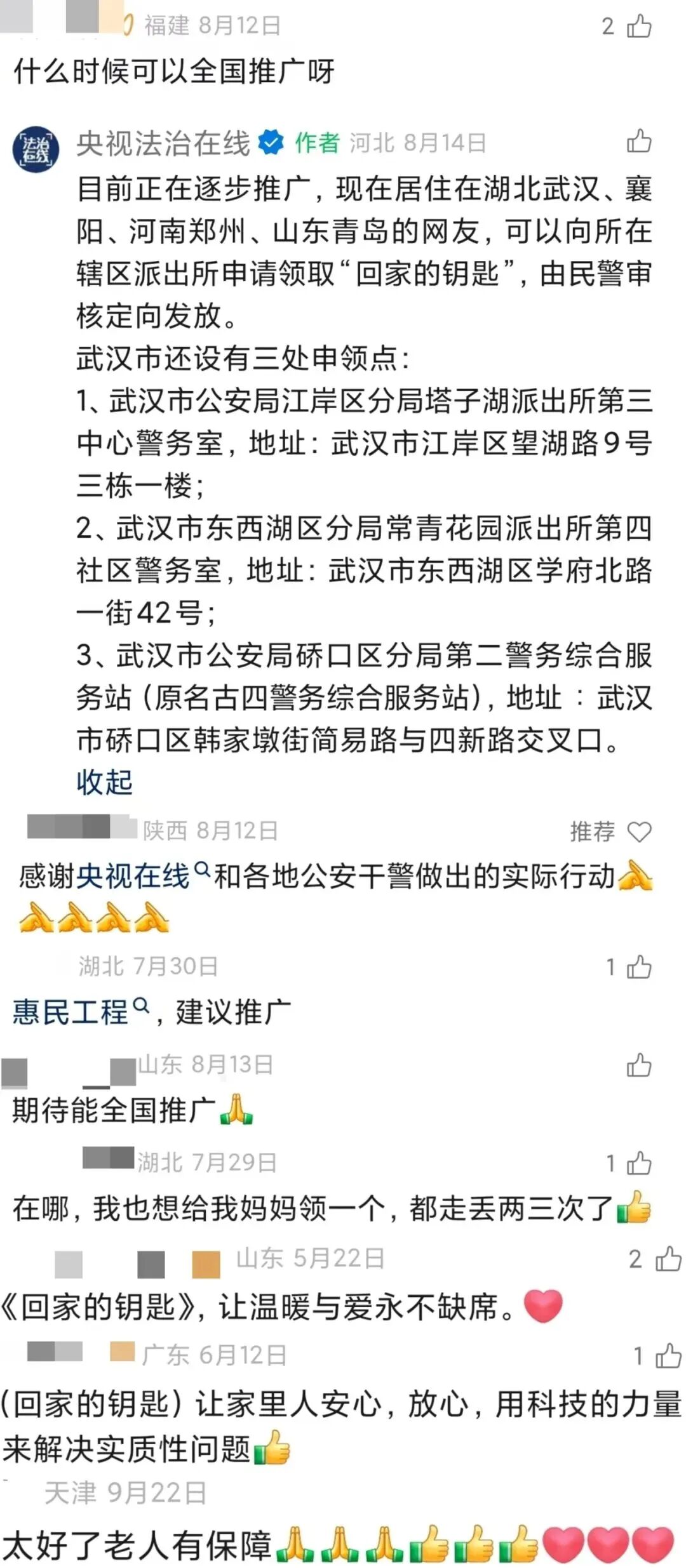 每一站活动都会收获大量的网友互动,其中有对公益项目的肯定,也有对易走失老人及家属的关注与鼓励,更有许多网友“许愿”,希望自己也能尽快申领到“回家的钥匙”,获得一份有科技赋能和人文关怀的安心。