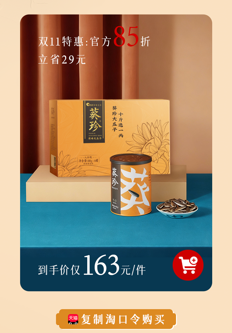 葵珍原味大瓜子188g*6罐礼盒装