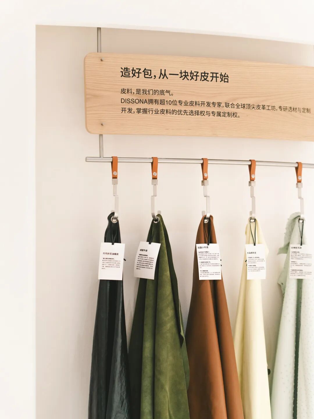 “欧洲人很重视关系和信任。”Sam 回忆道。他是周小姐的弟弟,和她一起多次前往意大利,在 DISSONA 负责包袋的工艺和设计。“信任和不信任,他们对待你的方式有本质差别”,在 Sam 看来,DISSONA 几十年间往返意大利寻求精品皮料,回国后造出配得上皮料等级的包袋,最终赢得了意大利人的信任。正因如此,DISSONA 成为国内第一批拿到欧洲皮料优先定制权的品牌 —— 曾经只供应 HERMES 的皮料,现在 DISSONA 也能使用了。