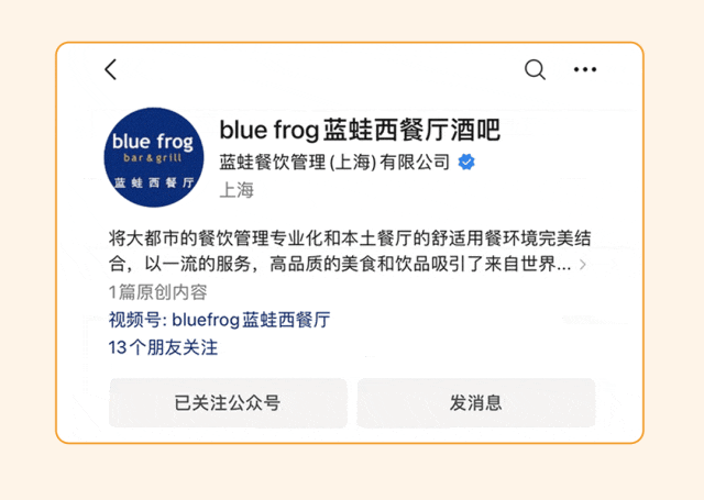文章内容来源于公众号:blue frog蓝蛙西餐厅酒吧,点此可查看原文,内容版权归相关企业所有,本网站仅供交流学习。若涉及版权问题或存在侵权情况,请及时与我们联系,我们将第一时间进行删除处理。