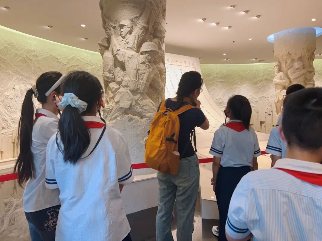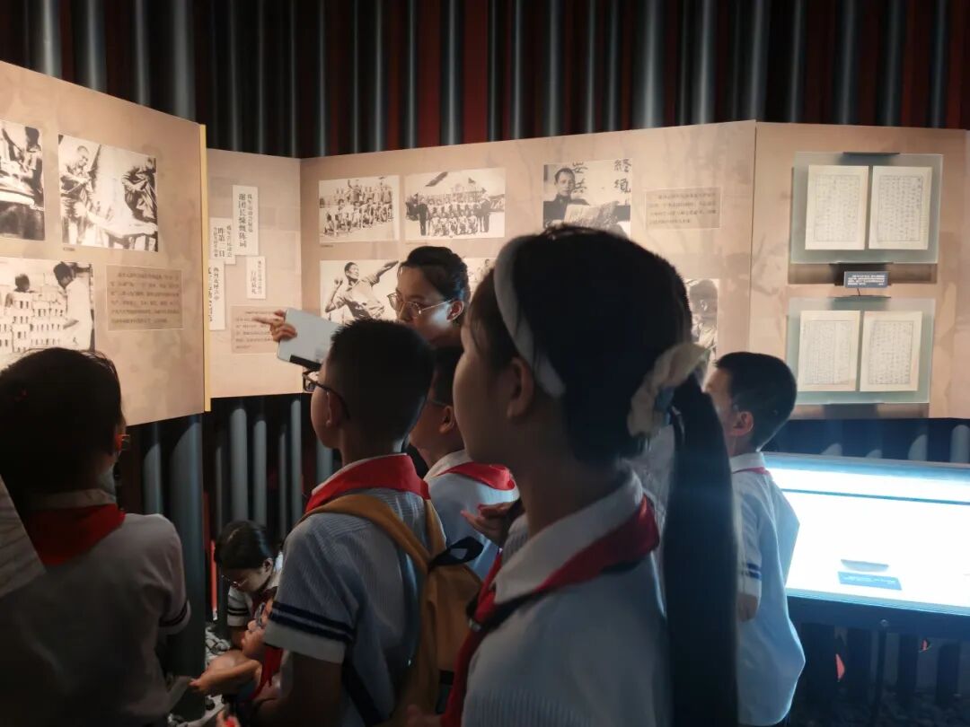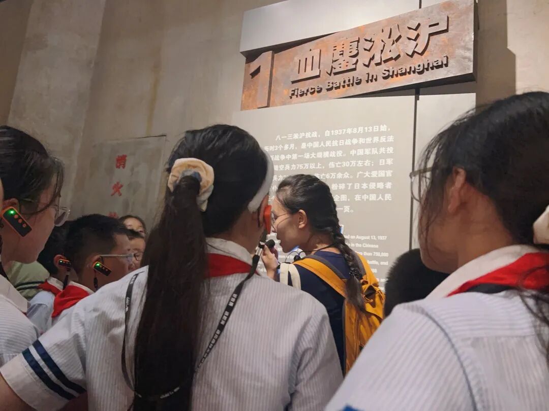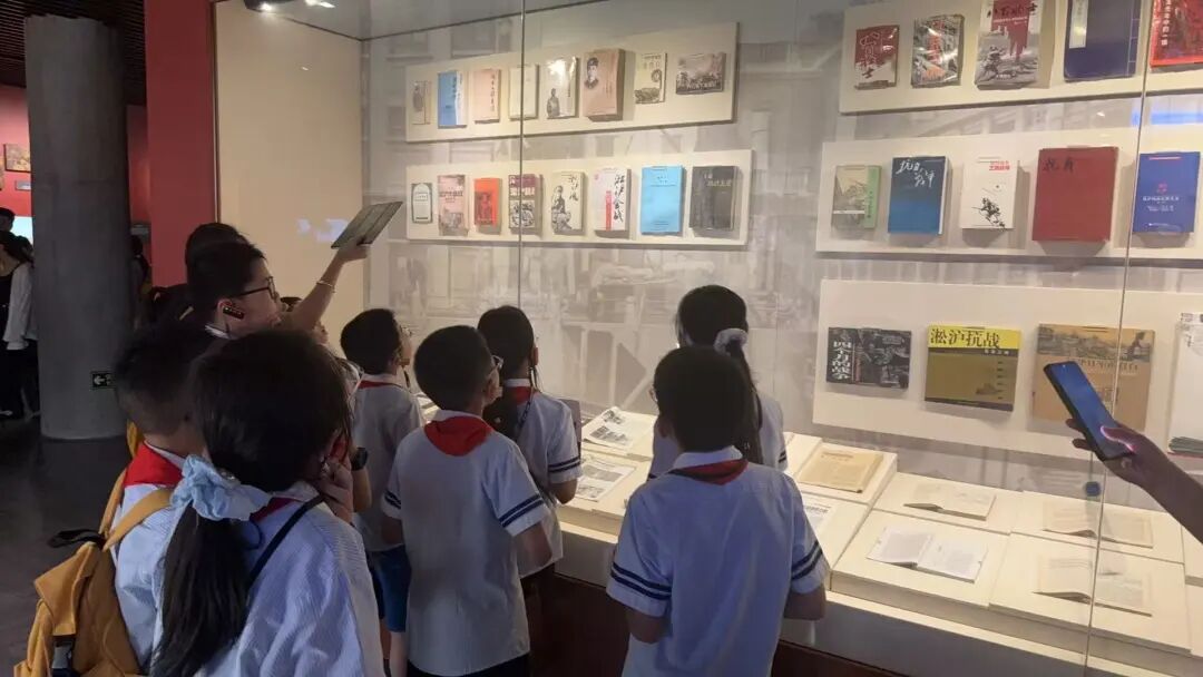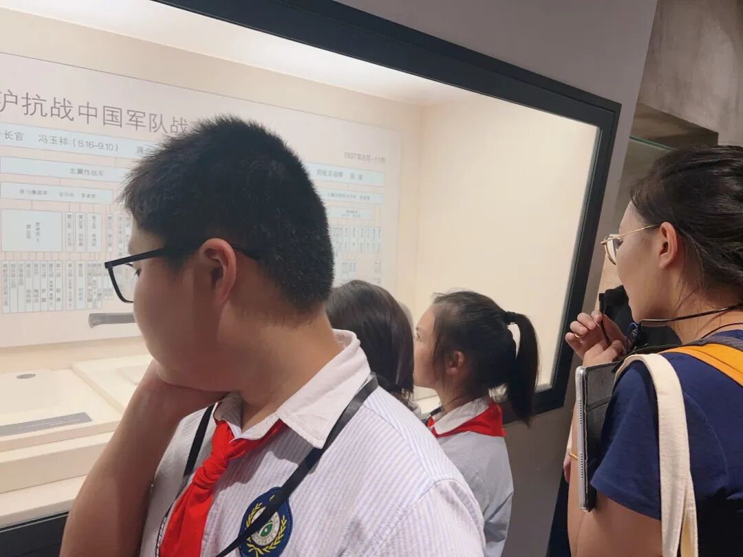 最后,孩子们走进“不朽丰碑”展区,视线从孤军的坚守延伸到全民族的抗争。这里展示的中共上海党组织领导下的抗日救亡运动,让他们明白这场胜利从不是孤军奋战,而是无数人用热血凝聚的民族力量,对“英雄”与“抗争”的理解也因此更加深刻。
