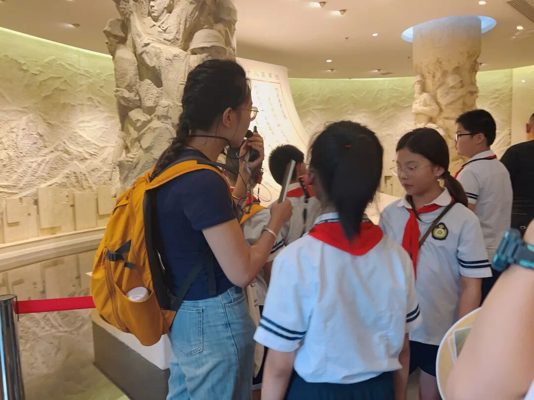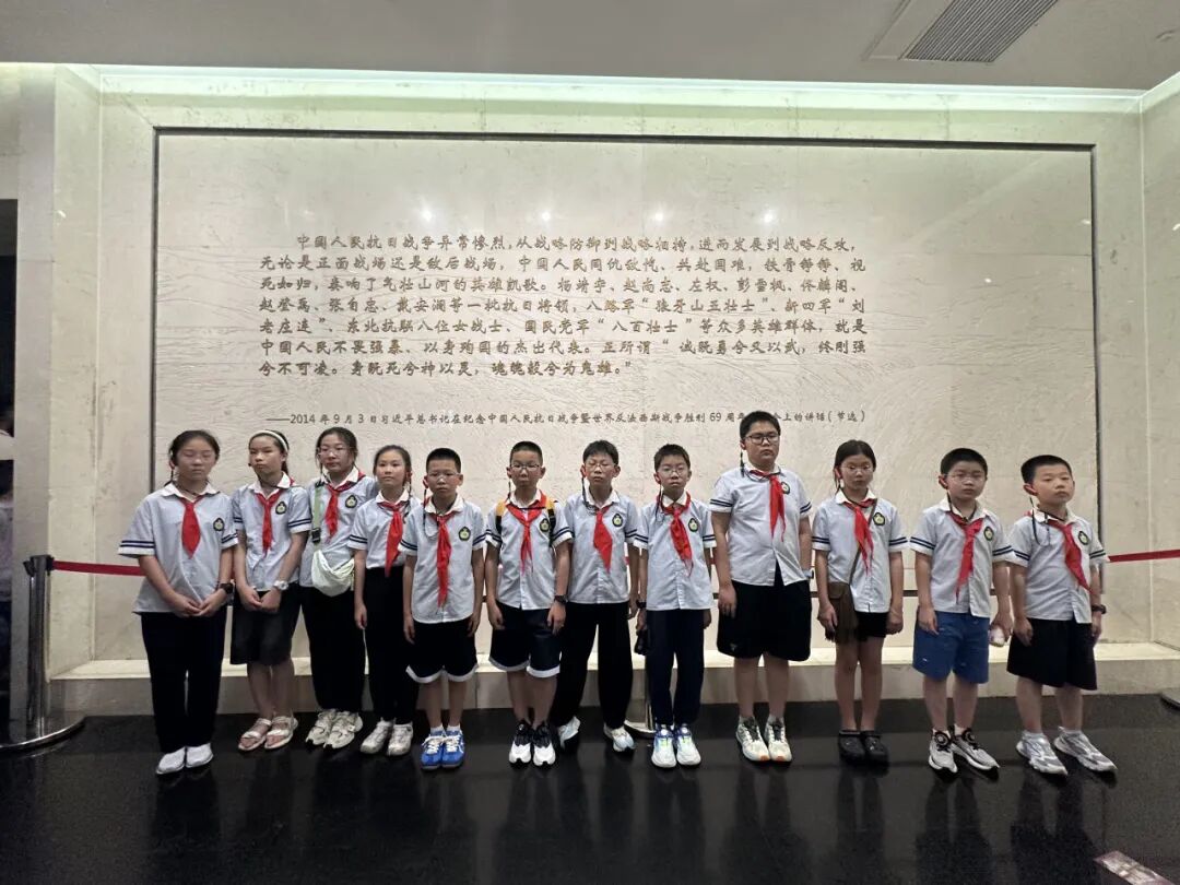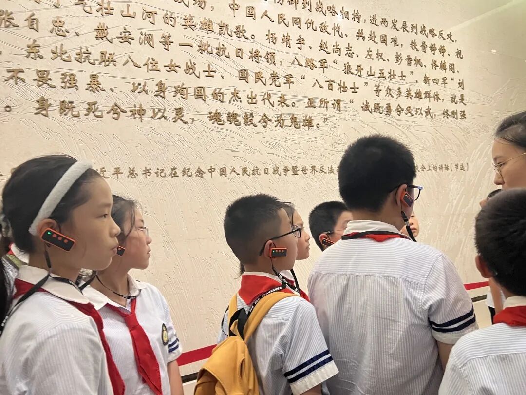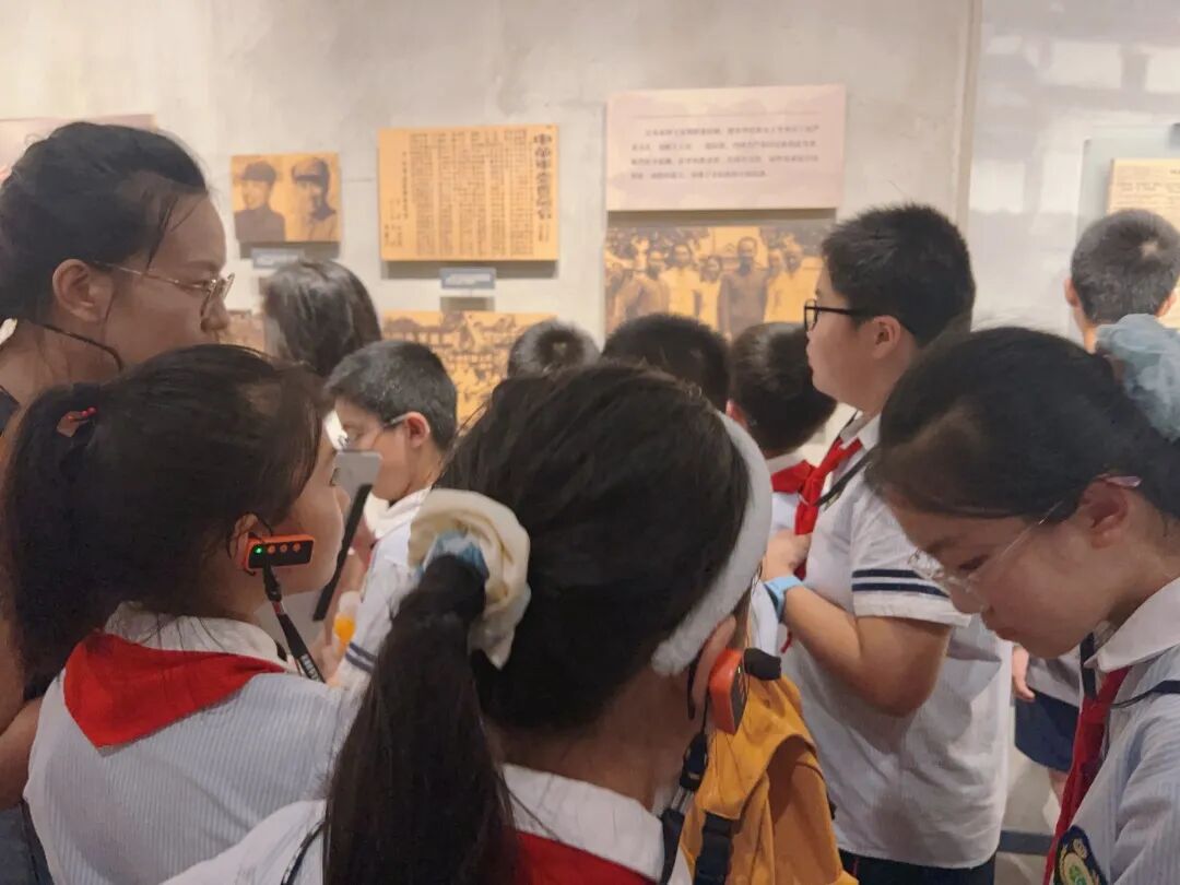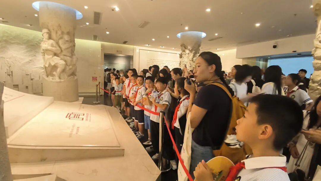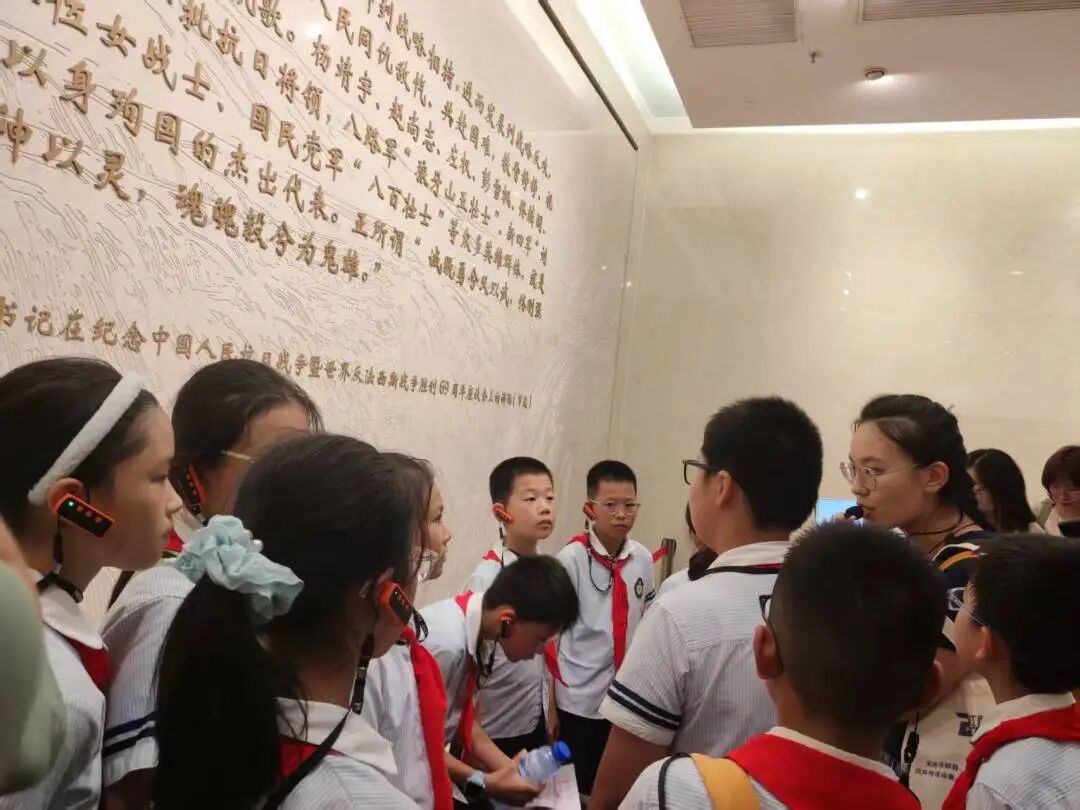 最后,孩子们走进“不朽丰碑”展区,视线从孤军的坚守延伸到全民族的抗争。这里展示的中共上海党组织领导下的抗日救亡运动,让他们明白这场胜利从不是孤军奋战,而是无数人用热血凝聚的民族力量,对“英雄”与“抗争”的理解也因此更加深刻。