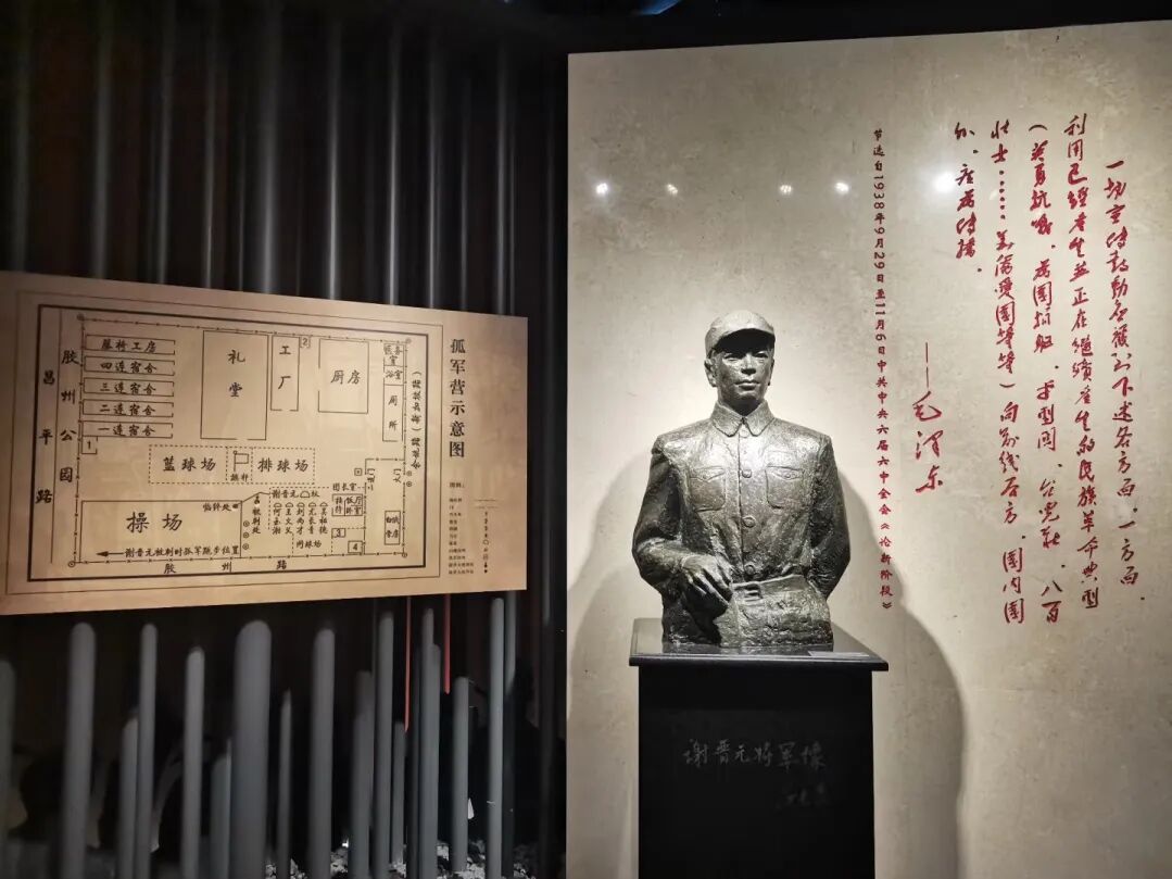 沿着历史的轨迹继续前行,“孤军抗争”展区的内容让孩子们的心情愈发凝重。他们得知,完成掩护任务的“八百壮士”撤入公共租界后竟被羁留为“孤军营”,而谢晋元将军始终坚拒日伪利诱,直至1941年遭刺杀身亡,用生命践行了“爱国抗敌”的誓言,这份悲壮深深烙印在孩子们心中。