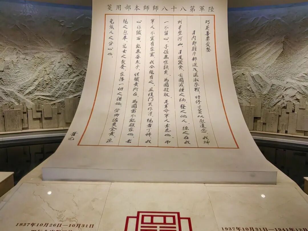 刚步入馆内,序厅便以沉静的力量牵引住孩子们的脚步。他们驻足凝视谢晋元将军写给妻子的家书,听着解说员娓娓道来信中“为国杀敌”的壮志与对“老母弱妻”的牵挂,字里行间的铁血与柔情,让孩子们率先触摸到“八百壮士”对家国的深沉情怀。
