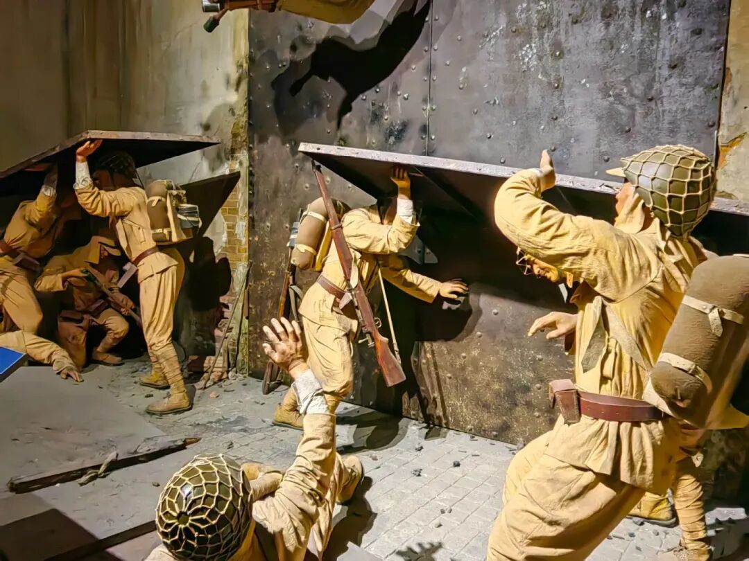 穿过历史背景的铺陈,“坚守四行”展厅的战斗还原场景骤然将孩子们带回1937年的战场。眼前的实景再现让他们仿佛亲历了谢晋元率约420名士兵(对外称“八百壮士”)在此激战四天四夜、击退日军多次猛攻的壮烈——以寡敌众的坚守、毙伤敌200余人的战绩,让孩子们切身体会到中国军民宁死不屈的抗战决心。