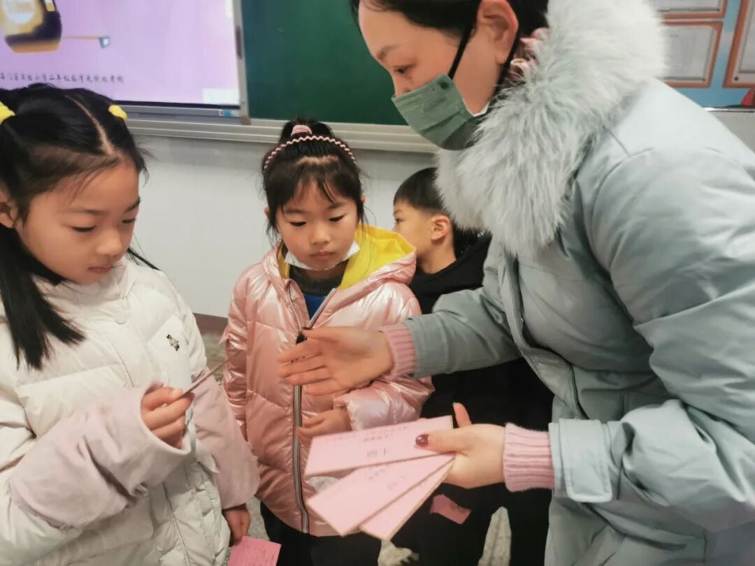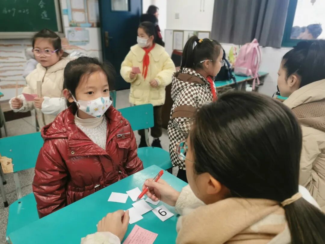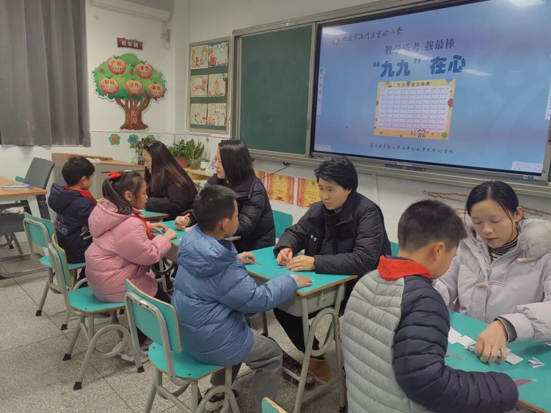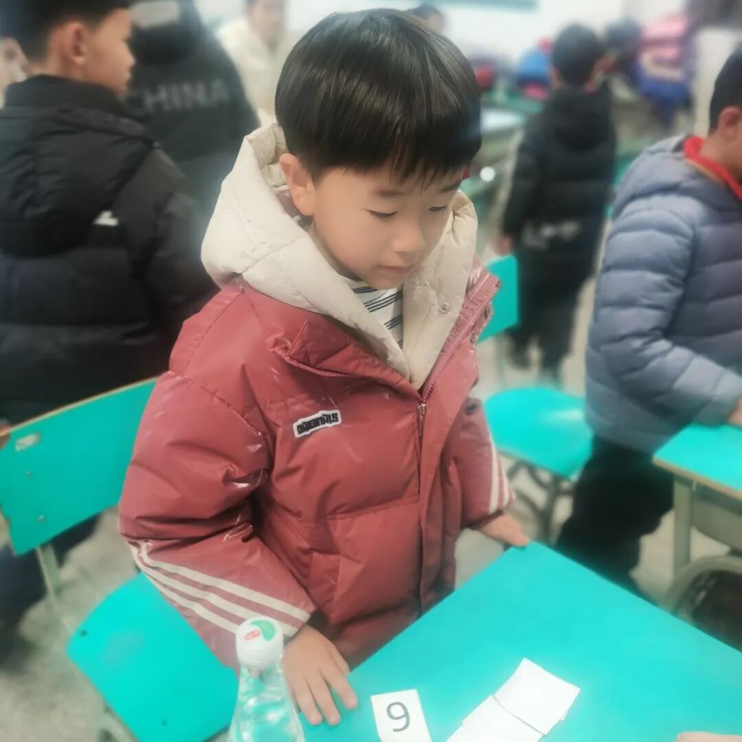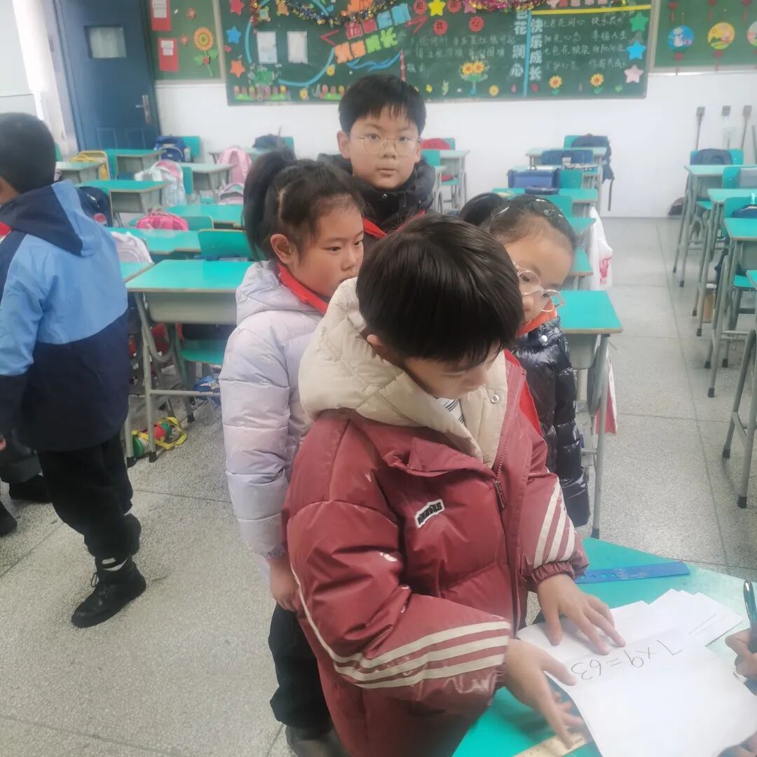 本学期我们学习了1~9的乘法口诀表,我们要求孩子不仅会横着背、竖着背,还能拐弯背。考核时,我们把数字1到9制成抽签纸,孩子随机抽取一个数字,抽到几就来背诵几的口诀。孩子们快速流利地背诵着口诀,享受着数学学习的乐趣。