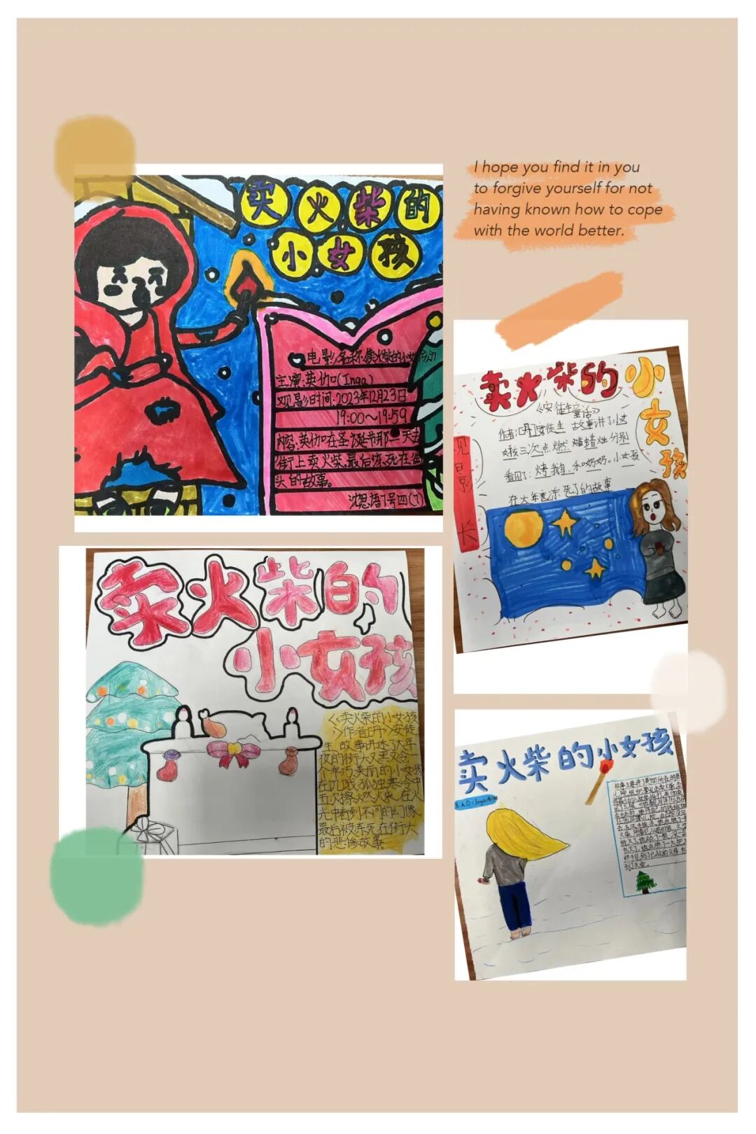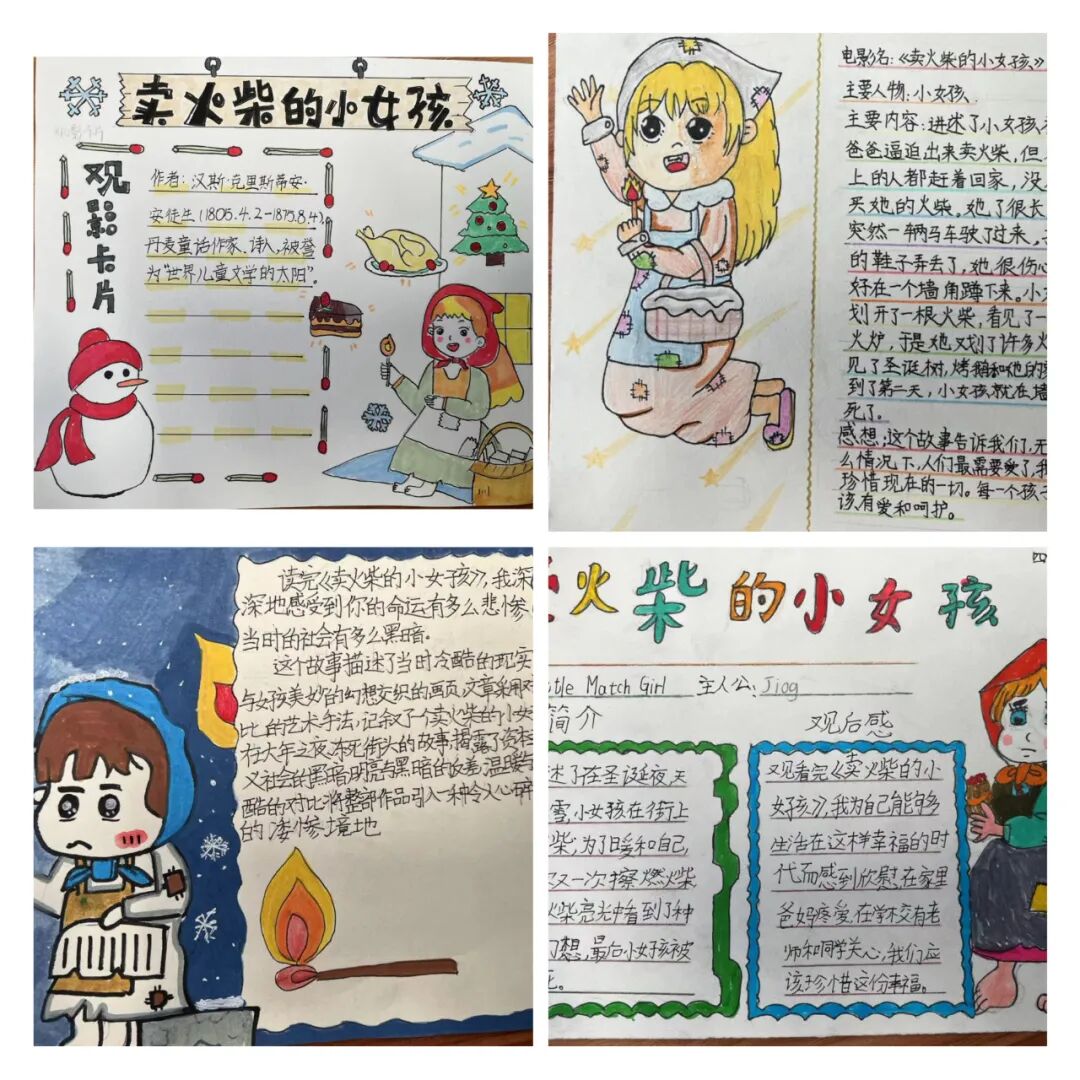 观影活动让孩子们重温经典童话,即使是一根小小的火柴梗,传递的也是温暖和幸福。活动结束,孩子们自己动手制作了各种精美的观影卡。