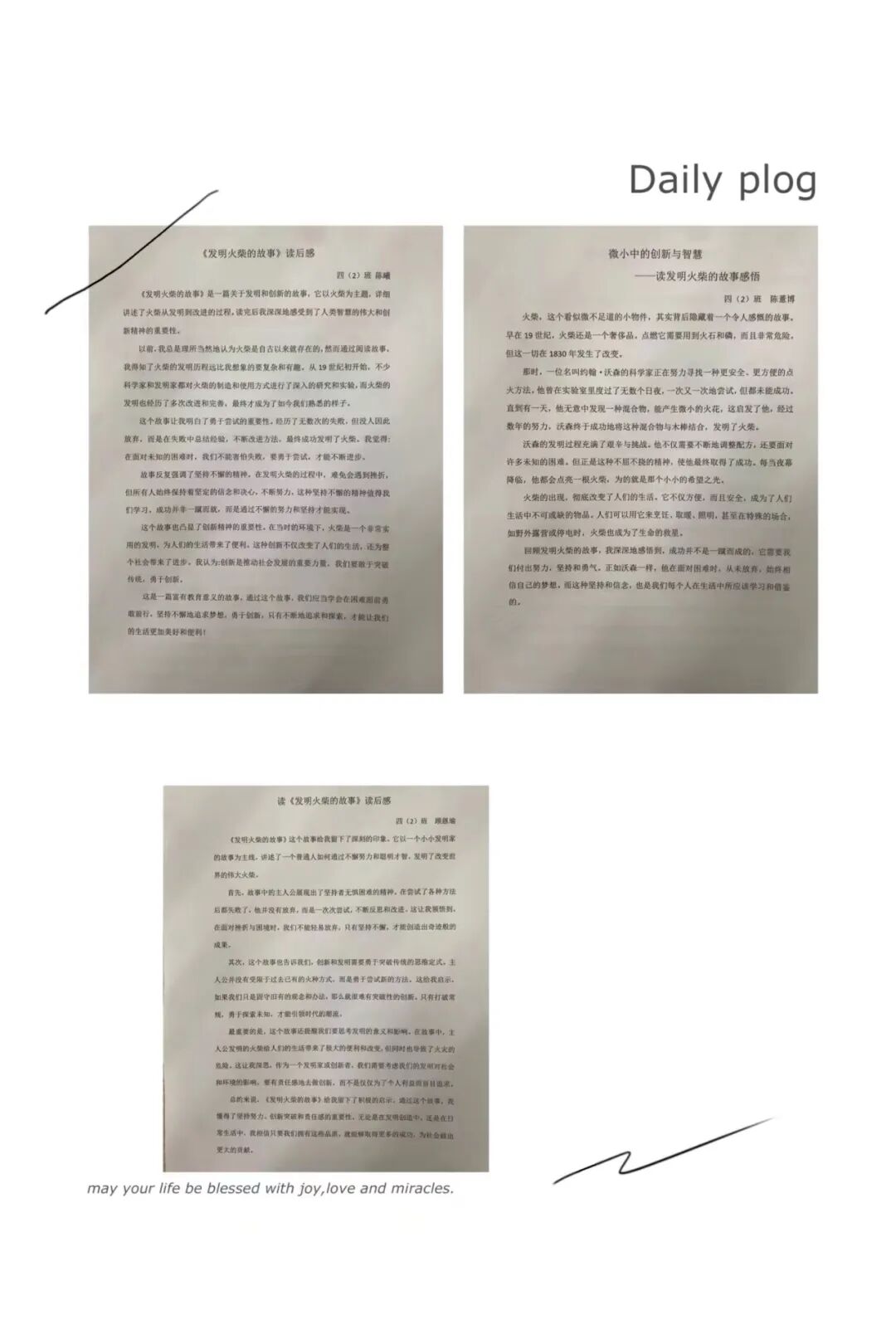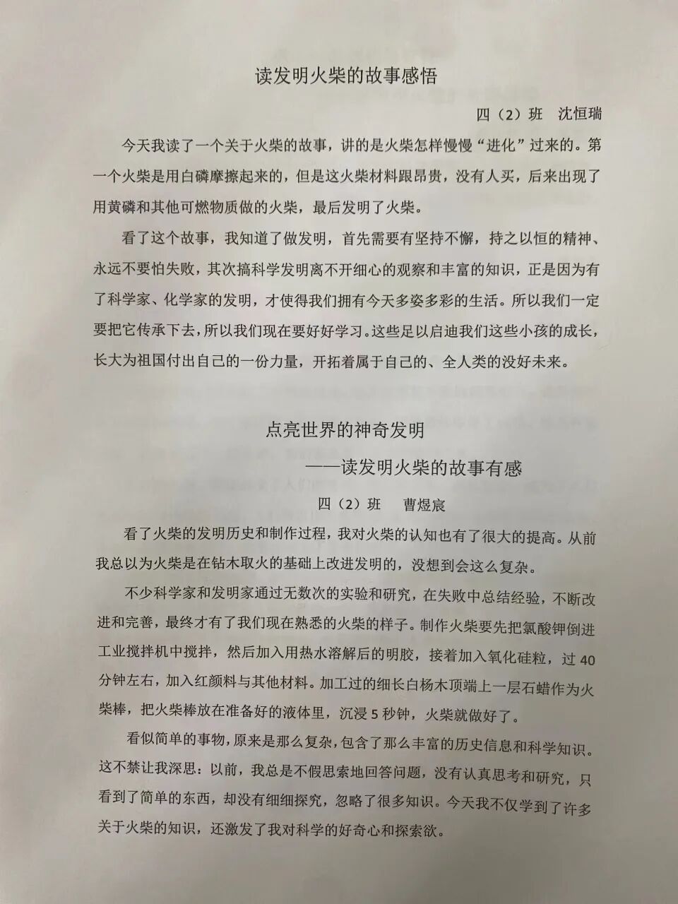 孩子们读完火柴梗的发明故事,互相分享着自己的感悟和思考。