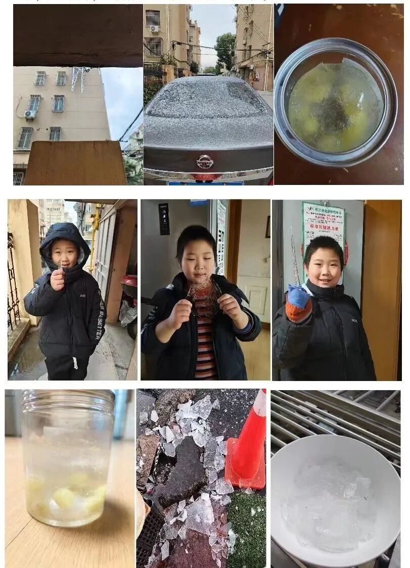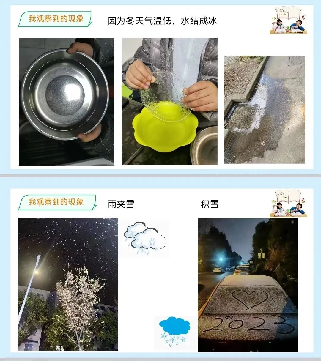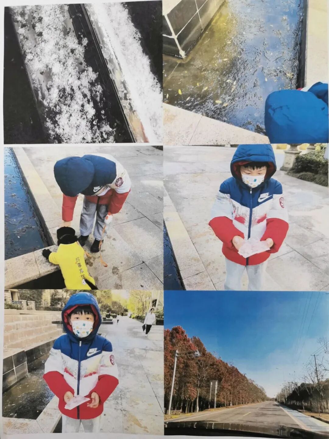 泥土、蔬菜、水缸、窗玻璃、汽车、院子里的石雕……生活中的事物都成了孩子们研究的对象,观察他们在零上和零下时的不同样态,感受温度对于事物造成的影响。