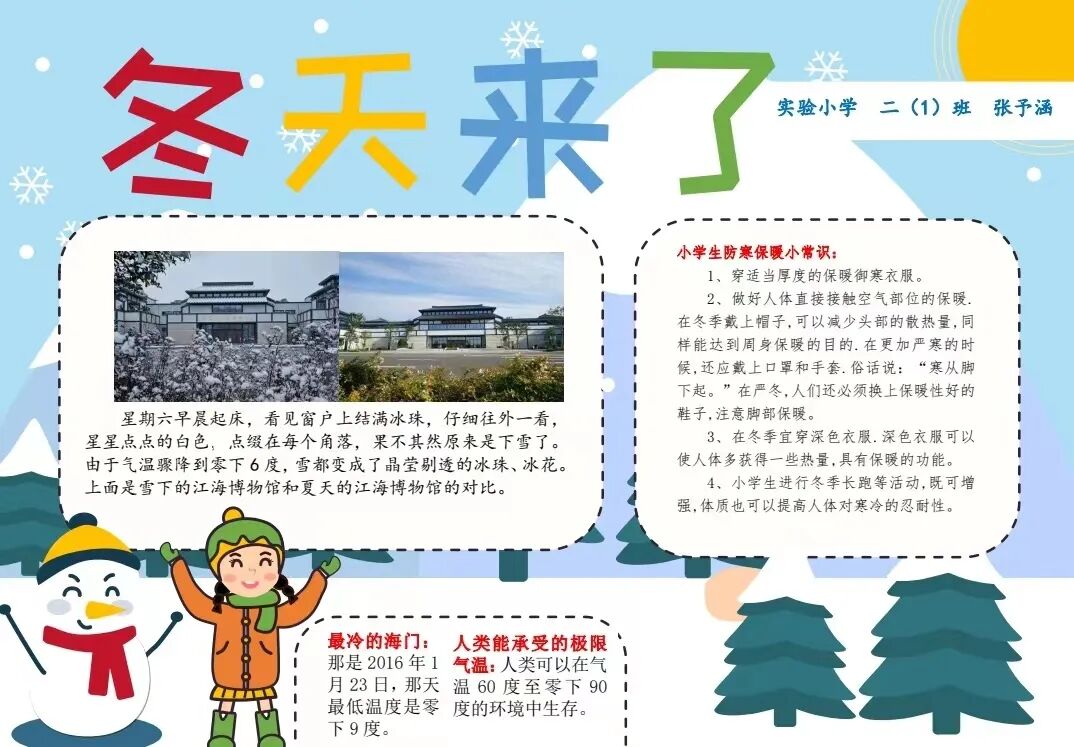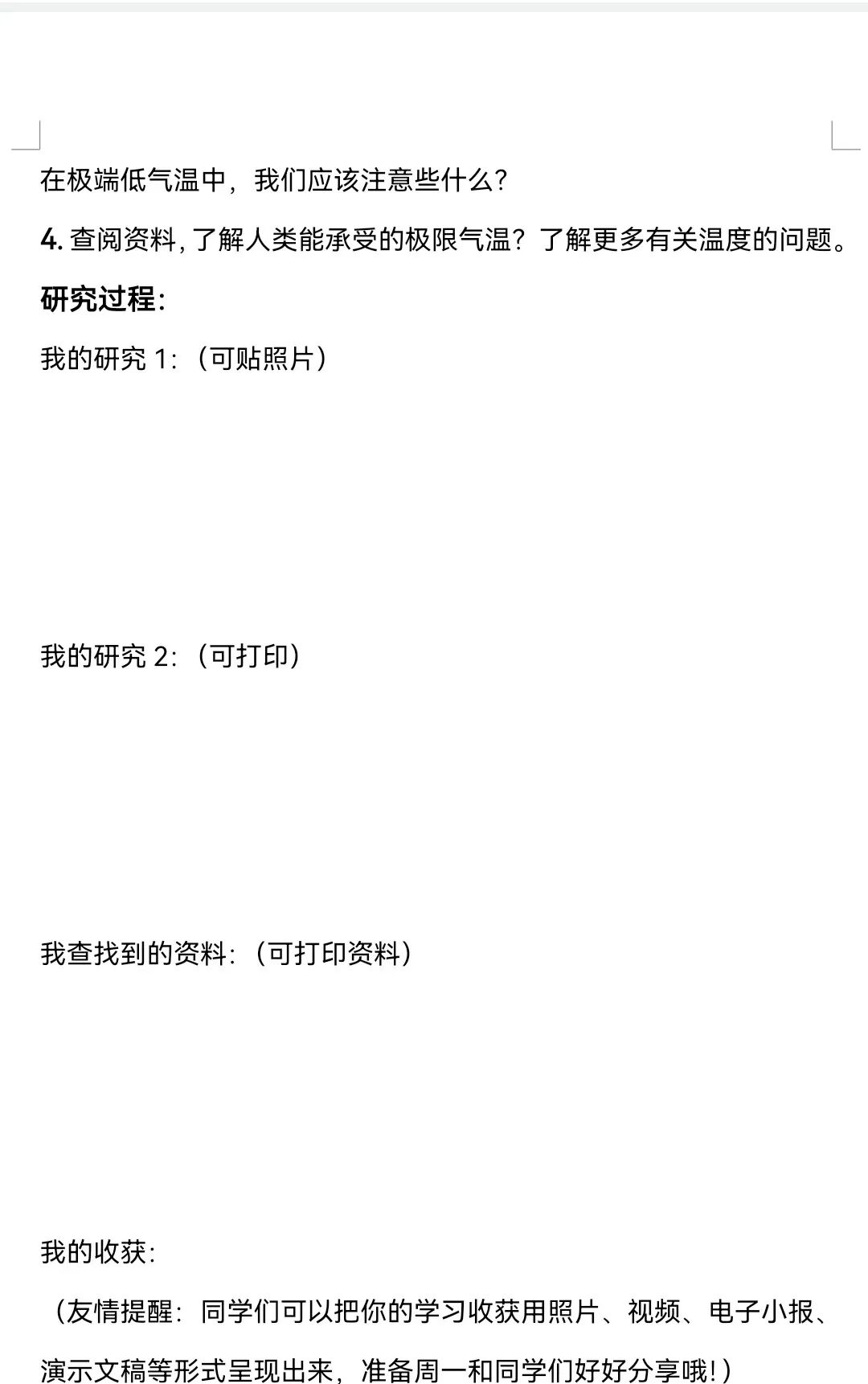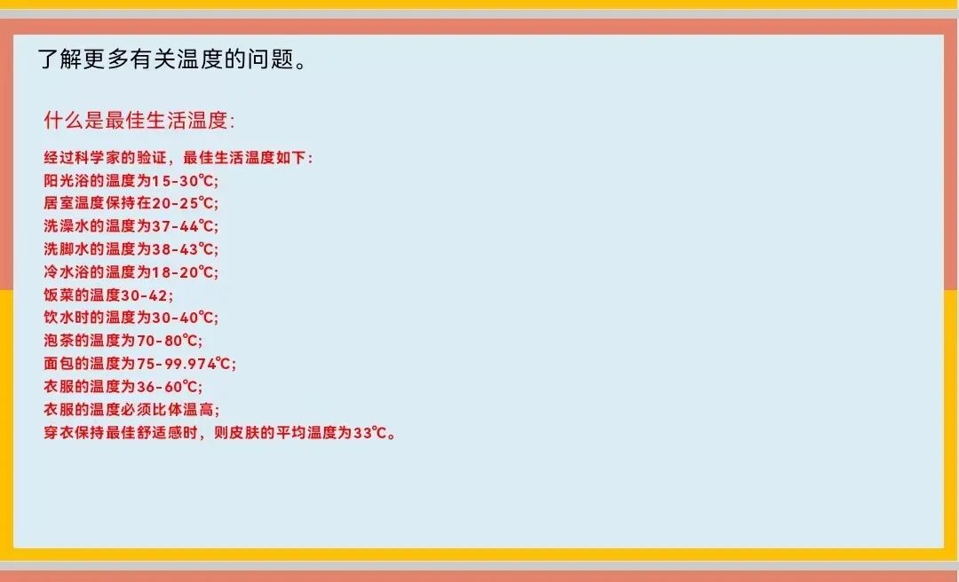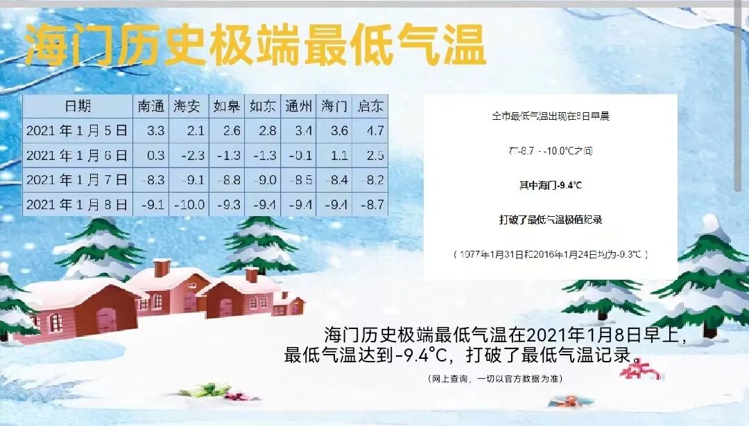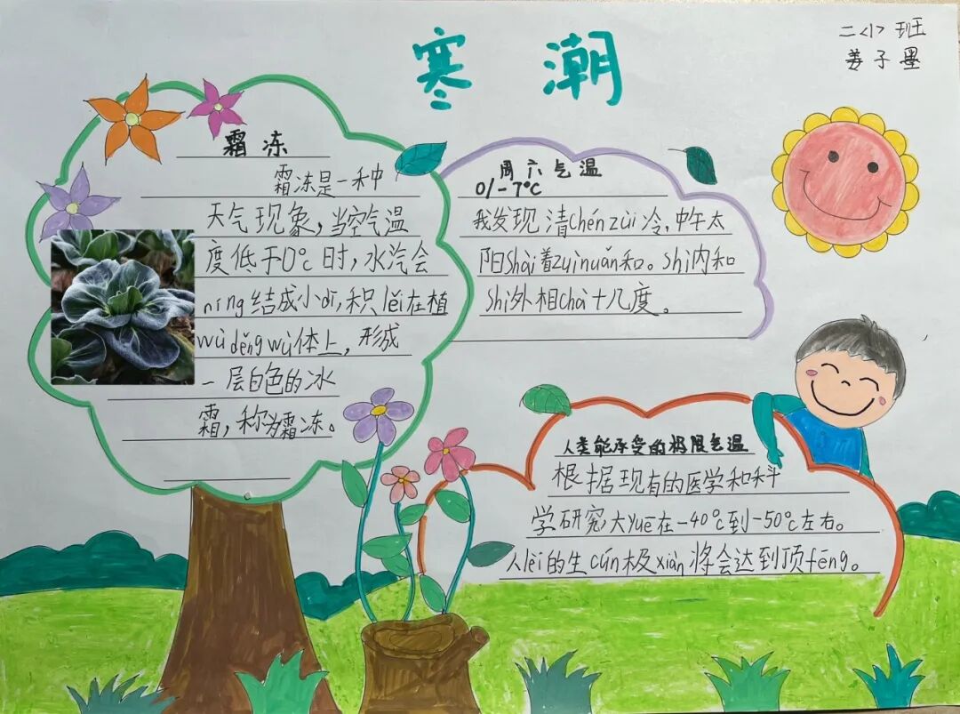 寒潮橙色预警又是怎么回事?海门历史上极端最低气温是多少度?是在哪一年?在极端低气温中,我们应该注意些什么?人类能承受的极限气温是多少?我国最冷的地方是在哪里?孩子们查阅资料,原来温度的学问还不少呢!