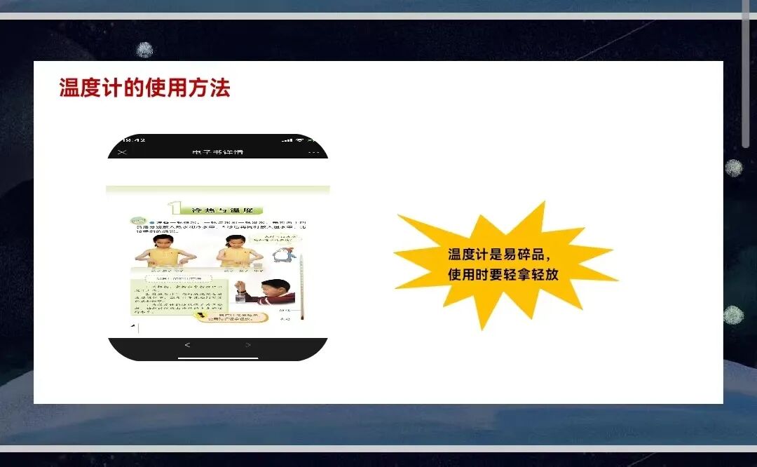 看看温度计的构造,学一学温度的测量,监测一下周六一天几个时段的气温,看看周六什么时候的温度最低?什么时候温度最高?看看你家室外和室内量到的温度相差几度?一起测一测,原来数学就在我们身边。