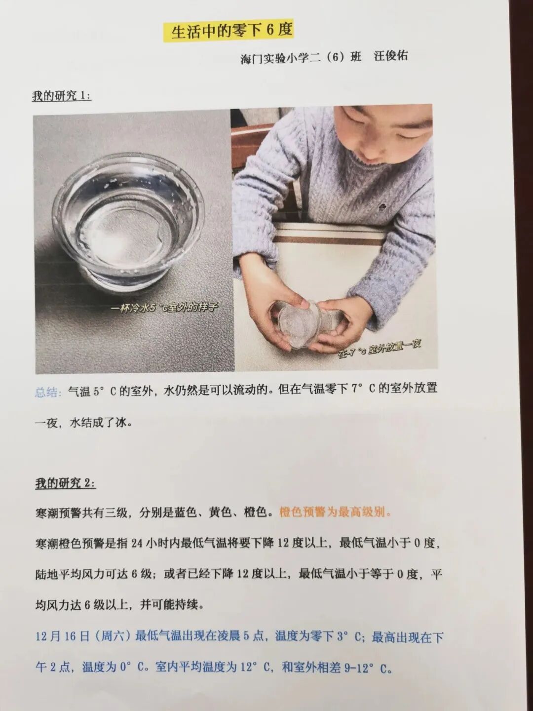 本期推出的是素养作业暨跨学科主题学习是——生活中的零下6度。