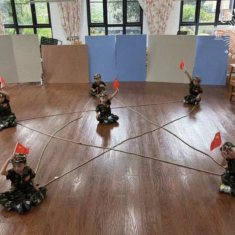 集体操《闪闪红星》表演中,孩子们动作整齐划一,似灵动小战士,以活力姿态展现对红星精神的传承与热爱。