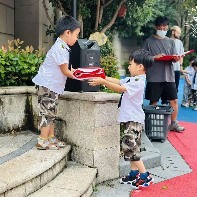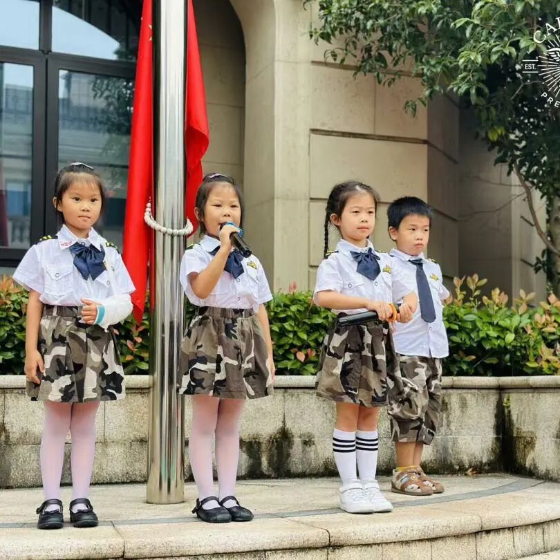 升国旗环节似激昂乐章,奏响爱国旋律,五星红旗晨风中升起,孩子们仰望旗帜,眼中闪光,满是眷恋热爱。这面旗飘扬校园,更扎根孩子心中,激励其逐强国梦!