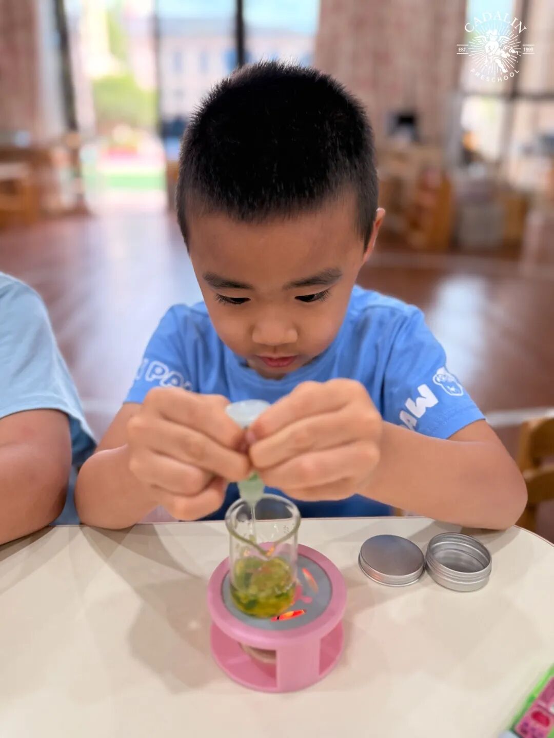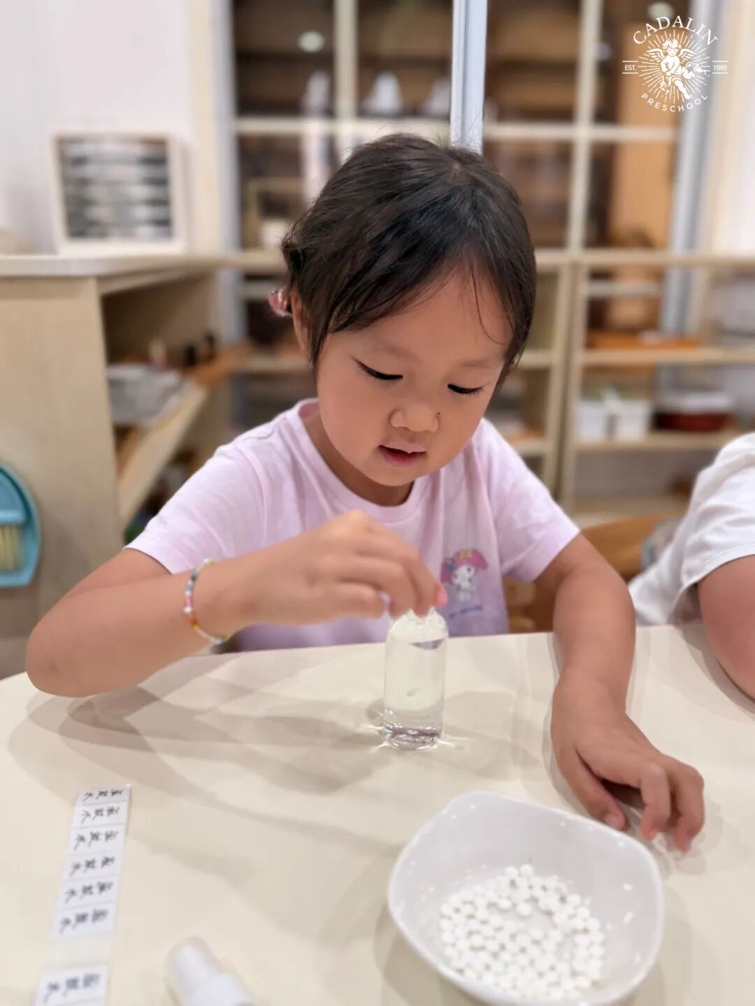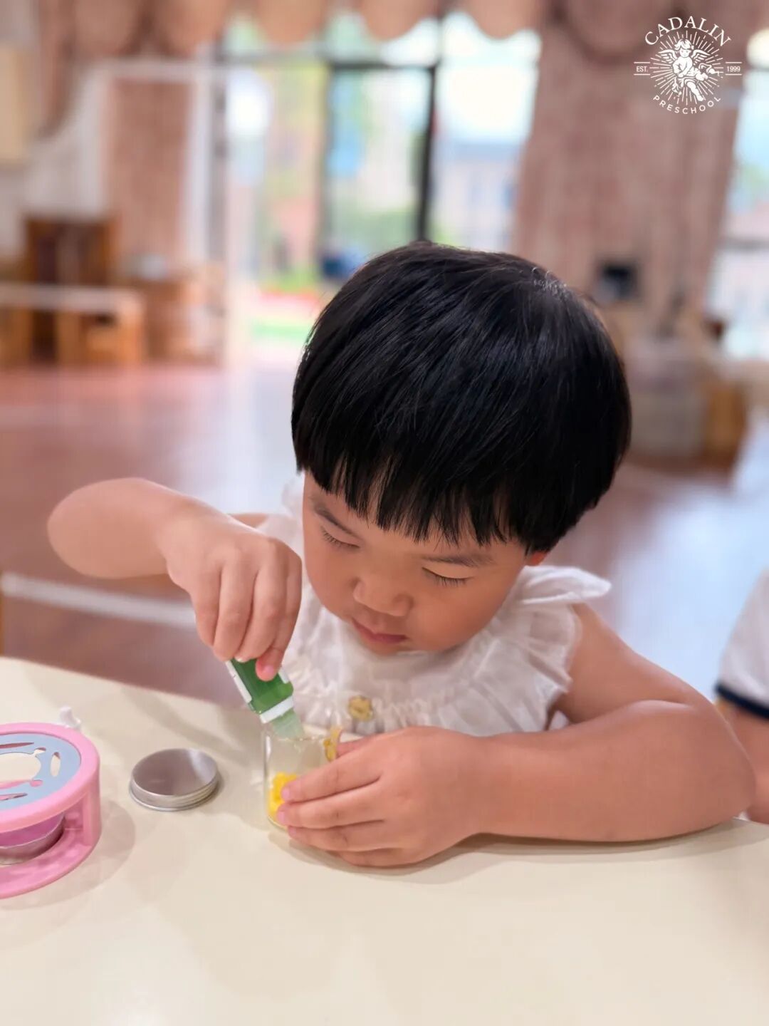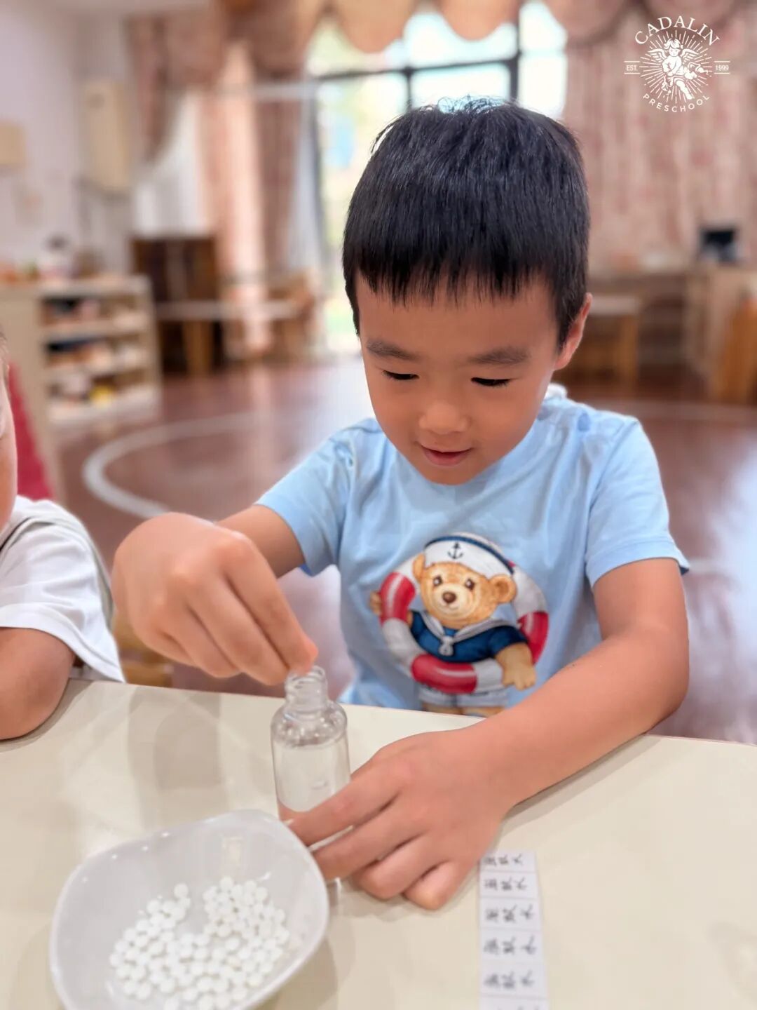 通过敲击不同水位的玻璃瓶,感受高低音,满瓶“咚”沉,浅瓶“叮”脆。宝贝们握着沙锤,轻摇“沙沙”伴,重晃“簌簌”和,乐在其中,收获满满。