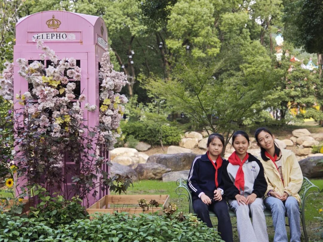 漫步“绿色长廊”,同学们与大自然中的绿植共赏秋景,在心中种下保护环境、尊重自然的种子。