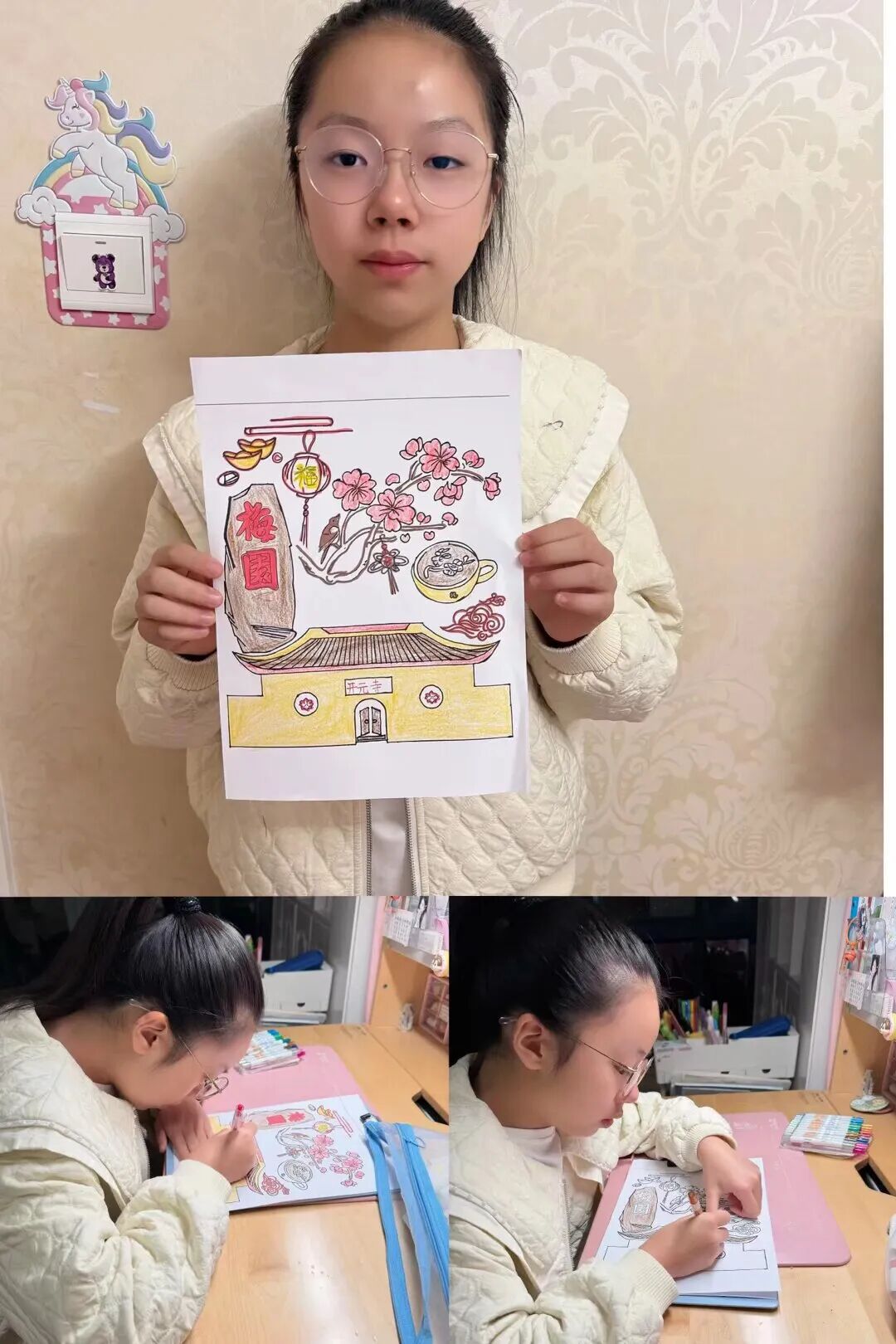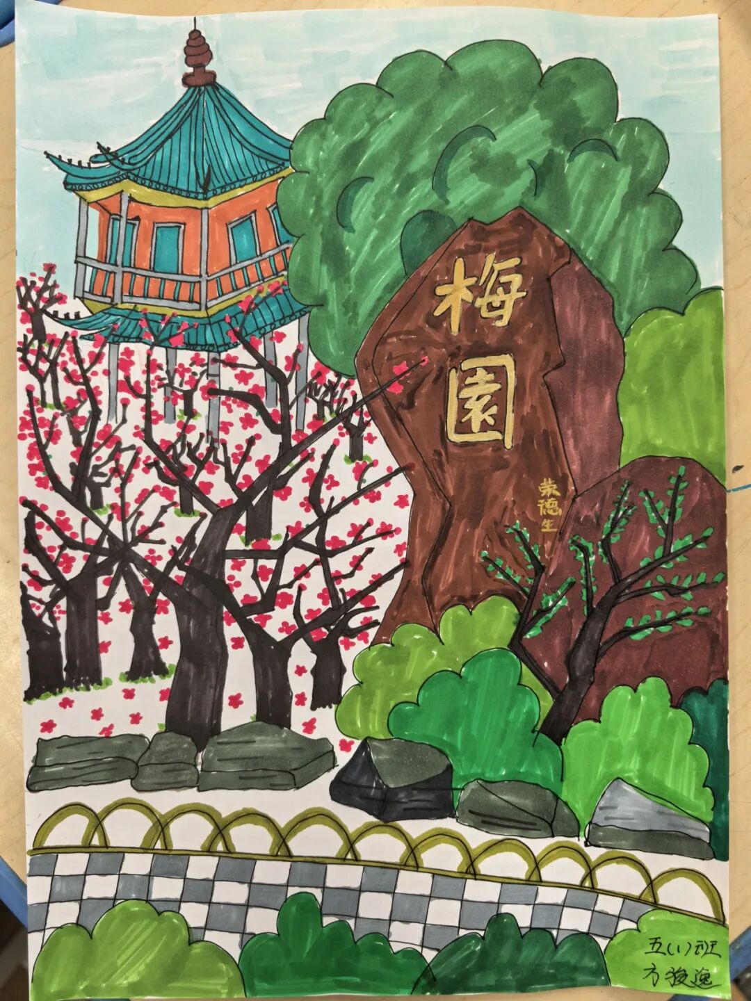 五年级的小画家们拿起画笔,将这如画的风景定格在纸上。每一笔,都是对梅园秋色的独特诠释。