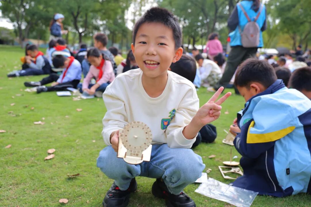 一年级制作“木工书鱼”,二年级绘制“京剧脸谱拨浪鼓”,三年级动手“日晷DIY”,在劳动中激发创造力,感受手作的乐趣。