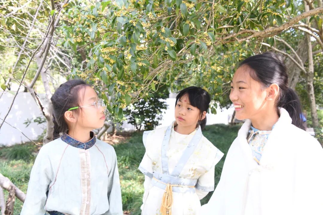秋染梅园,诗意流淌。四年级的同学们用稚嫩而真挚的声音,朗诵赞美秋天或梅花的诗歌。