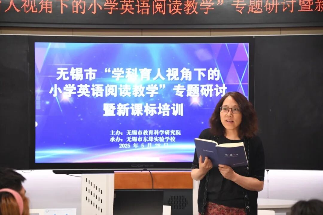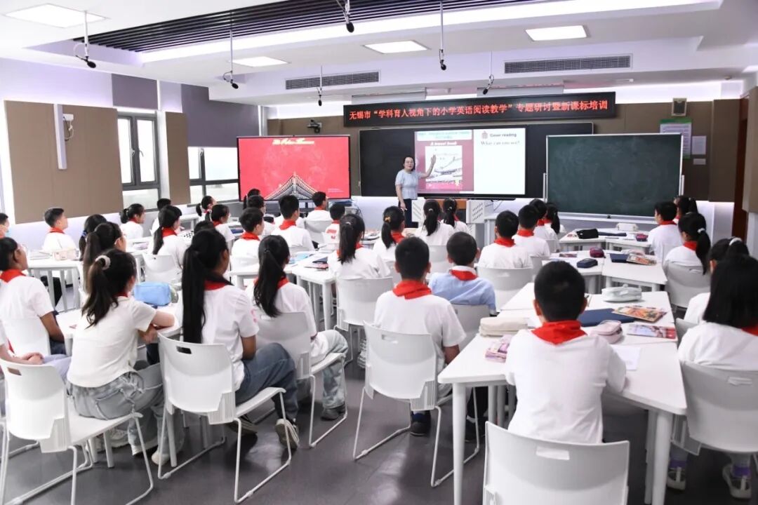 近日,无锡市东鿍实验学校成功举办"学科育人视角下的小学英语阅读教学"专题研讨暨新课标培训活动。本次活动由无锡市教育科学研究院主办,东鿍实验学校承办,并联合经开区"慧阅读"项目共同开展,旨在探索核心素养导向下的小学英语阅读教学创新模式。无锡市英语教研员万琰,滨湖区英语教研员唐梦漪,经开区英语教研员杭玉洁,东鿍实验学校校长陈烨和来自全市各小学的英语教师齐聚一堂,深入交流英语阅读教学中落实立德树人根本任务的有效路径与实践经验。