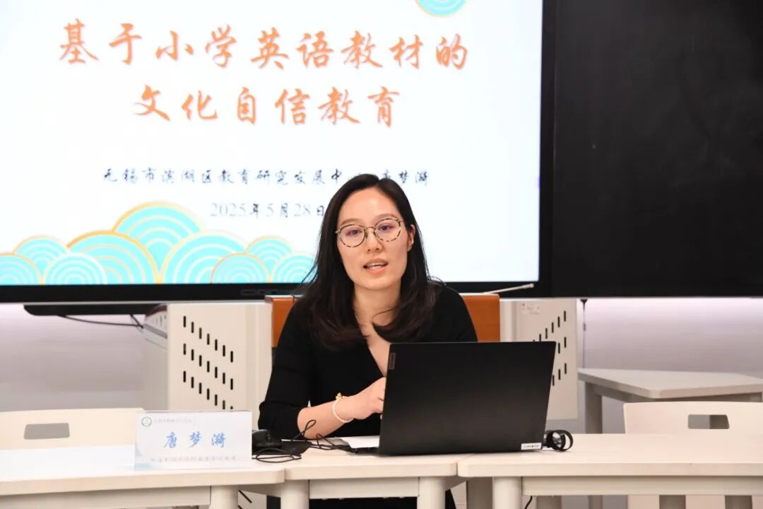 滨湖区小学英语教研员唐梦漪进行《基于小学英语教材的文化自信教育》专题讲座,以全球化视野系统梳理了英语教育中的文化维度,构建了文化认知框架。