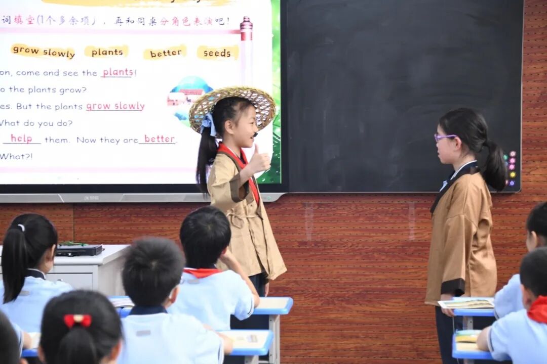 育英实验小学吴雪娟老师执教的传统文化绘本Grow, Plants, Grow! 以层层递进的问题链串联教学内容,帮助学生构建读前、读中、读后的阅读课框架。课堂上,学生积极参与听、说、读、思、演等活动,深入感知植物生长的规律,深刻认识到遵循规律的重要性。