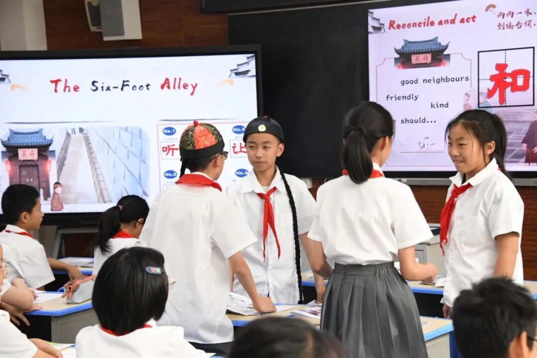 南京师范大学滨湖实验学校蠡湖小学部汪津宏老师执教的The Six-Foot Alley 以游客视角打卡桐城,自然切入主题“六尺巷”。教学设计利用“听,辨,借,劝,让,和”六步骤分解文本,巧妙结合辩论、chant、表演等各种形式,注重对学生发散思维的培养,最终由绘本联系生活,引导学生传承六尺巷谦和礼让的精神。