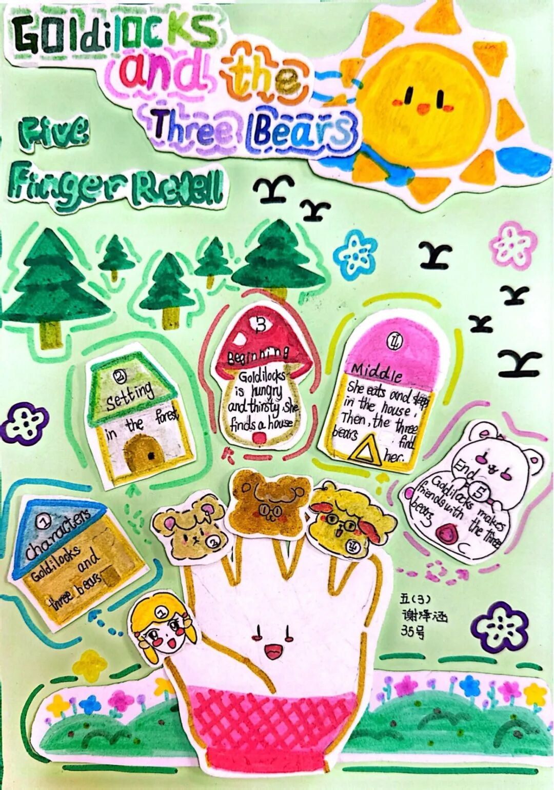 活动期间,东鿍实验学校英语组同步展示了基于"慧阅读"项目的创新作业成果。教师们以大单元教学为框架,指导学生运用"Story Mountain"故事山梳理法和"Five-finger Retell"五指复述法等专业阅读策略,对文本内容进行系统性解构与创造性呈现。这些特色作业既体现了阅读策略的迁移运用,又展现了学生个性化的理解表达,为英语阅读教学提供了可借鉴的实践样本。