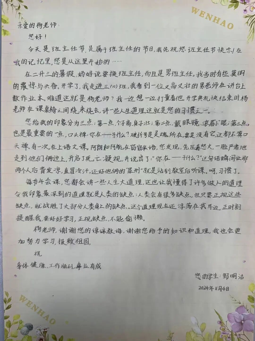 师生关系影响教育成效,有效沟通是情感桥梁。平日获老师帮助未及时感谢,或与老师有误会,都可借此写下心里话,坦诚交流。
