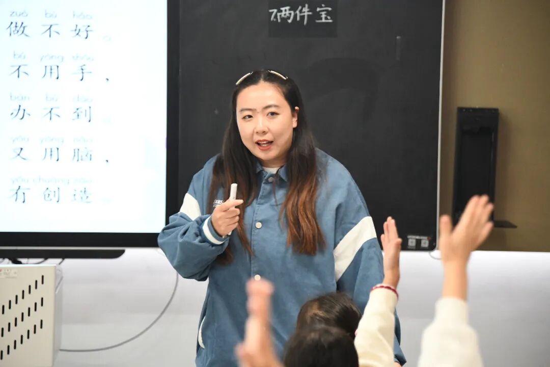 东鿍实验学校老师曹昊旻与一(7)班的孩子们共同展示了一堂生动有趣的阅读课——《两件宝》。曹昊旻以“寻找两件宝”“认识两件宝”和“使用两件宝”三大板块创设真实的任务情境,学生于实践中快乐识字,在趣味里实现知识与能力双提升。