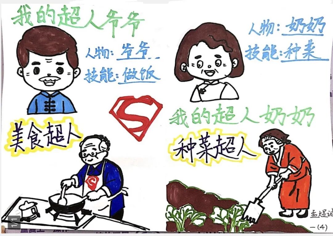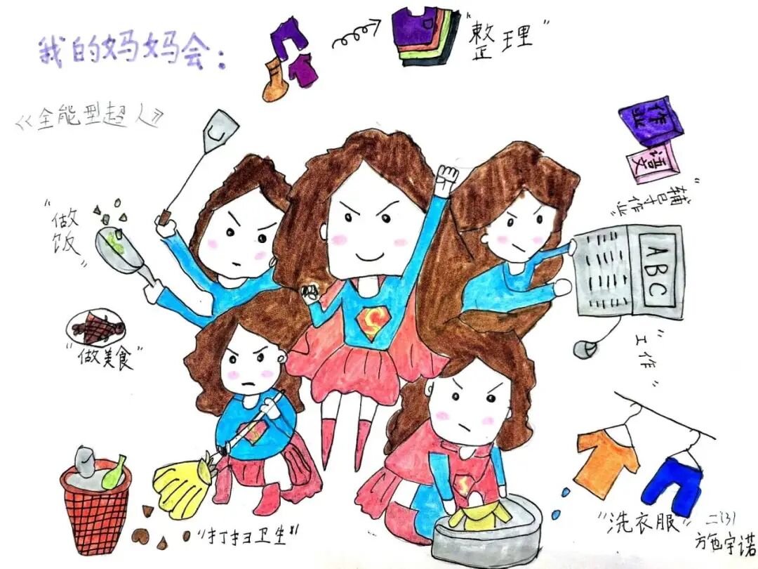 同学们更是化身“家庭侦探”,用画笔为身怀绝技的长辈绘制“超人身份卡”,在观察与描绘中,读懂了平凡背后的不凡。这一系列的暖心行动,让孝道不再是书本上的道理,而是可感可触的生活日常。