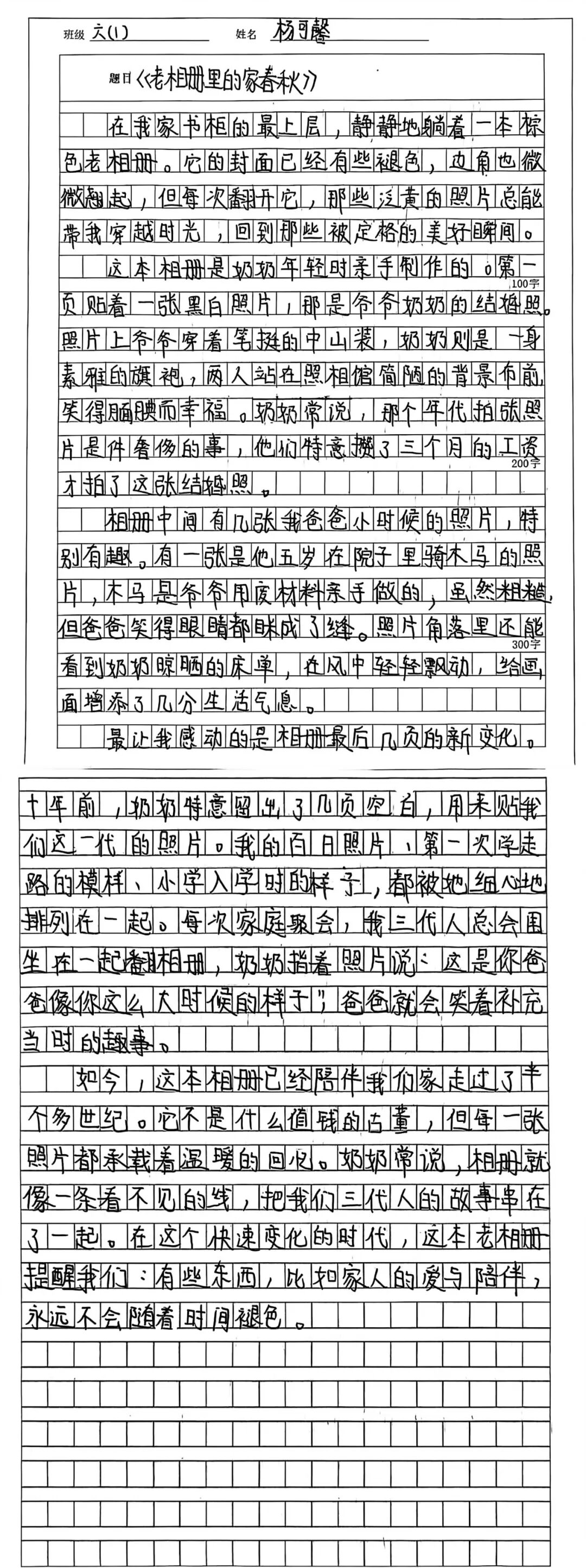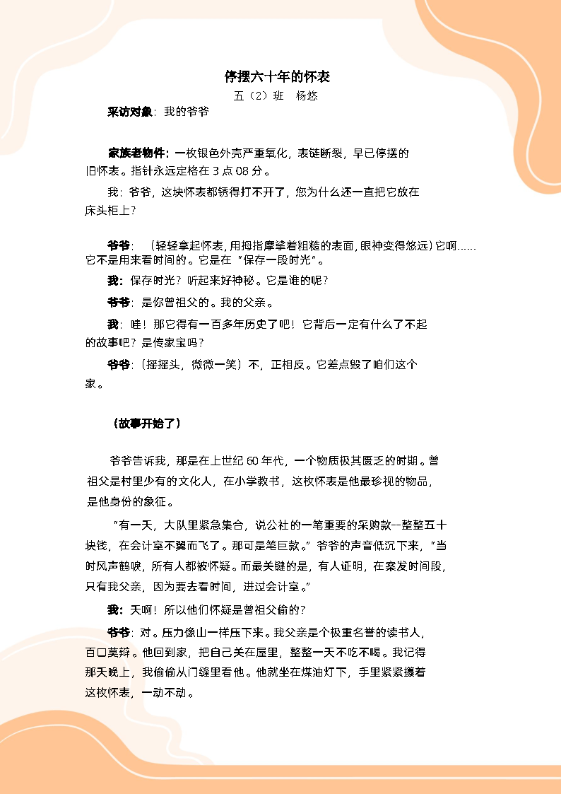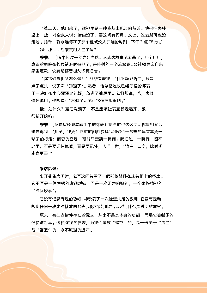 还有的同学扮演起“时光记者”,采访长辈,聆听老物件背后的家族故事,并用文字将其定格。从自然创作到历史寻踪,孩子们用巧手与慧心,完成了与长辈之间最深情的对话,也让传统文化的传承有了青春的笔迹。