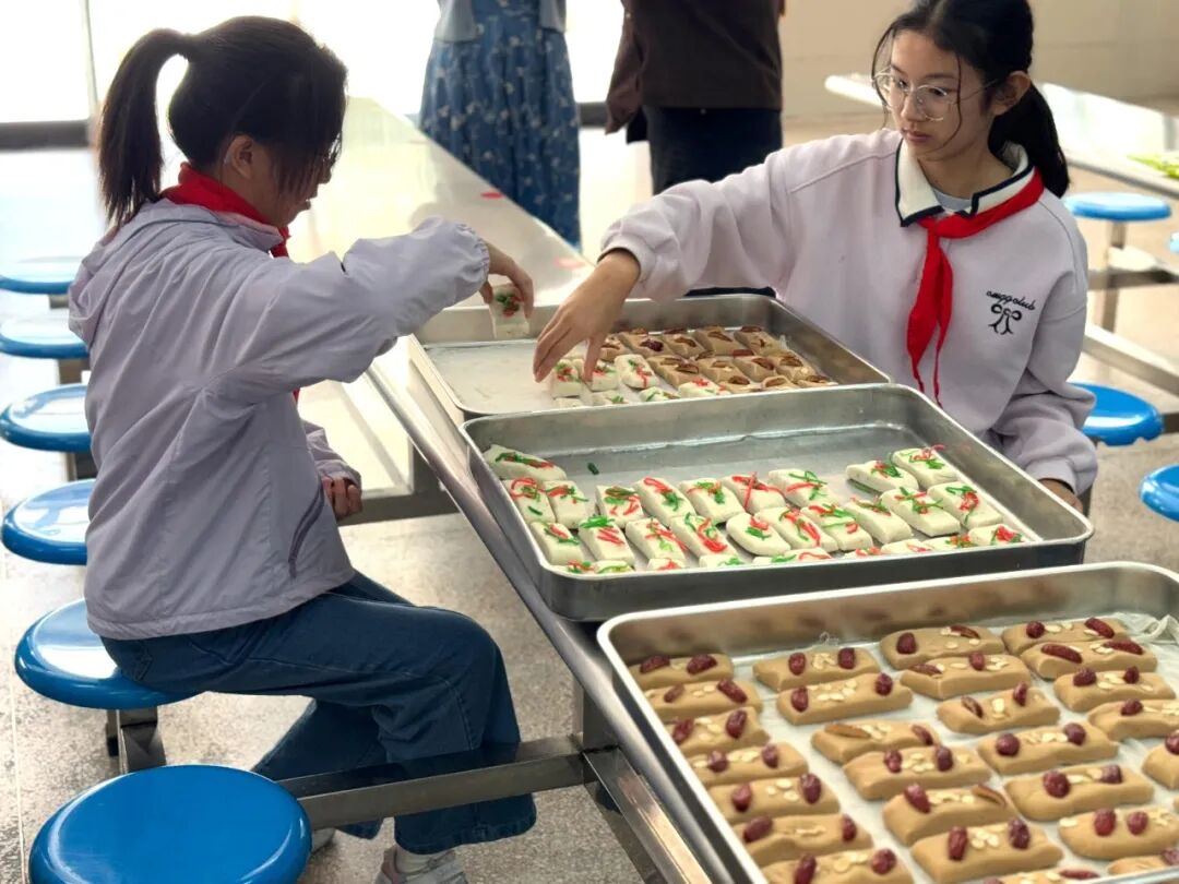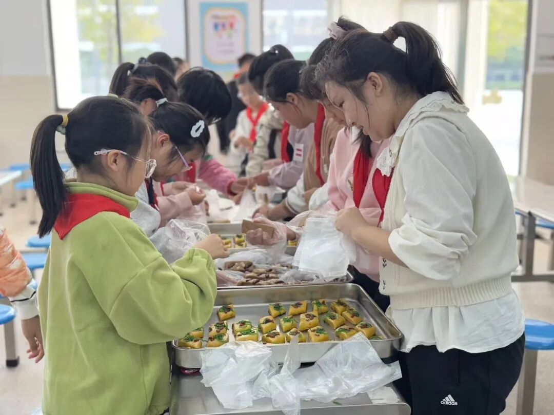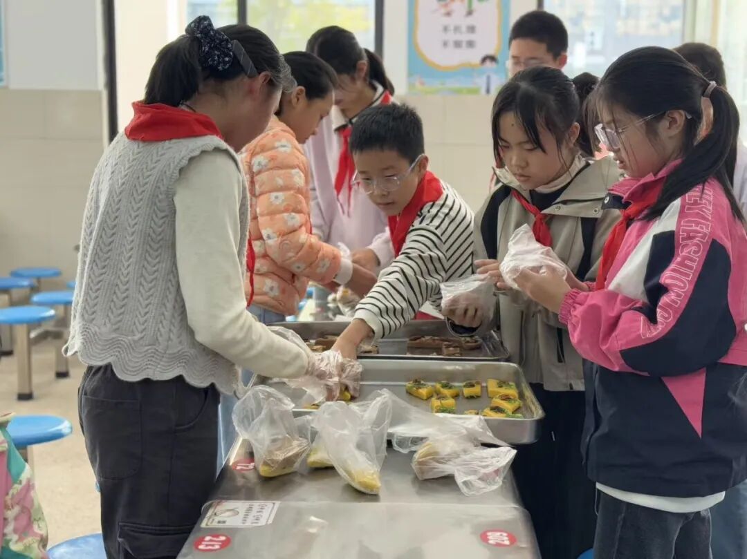 节日的仪式感,离不开亲身体验。同学们参与了颇具意义的“分装重阳糕”劳动实践。在食堂里,孩子们亲手将一份份糕点细心分装,忙碌的身影里满是专注与用心。
