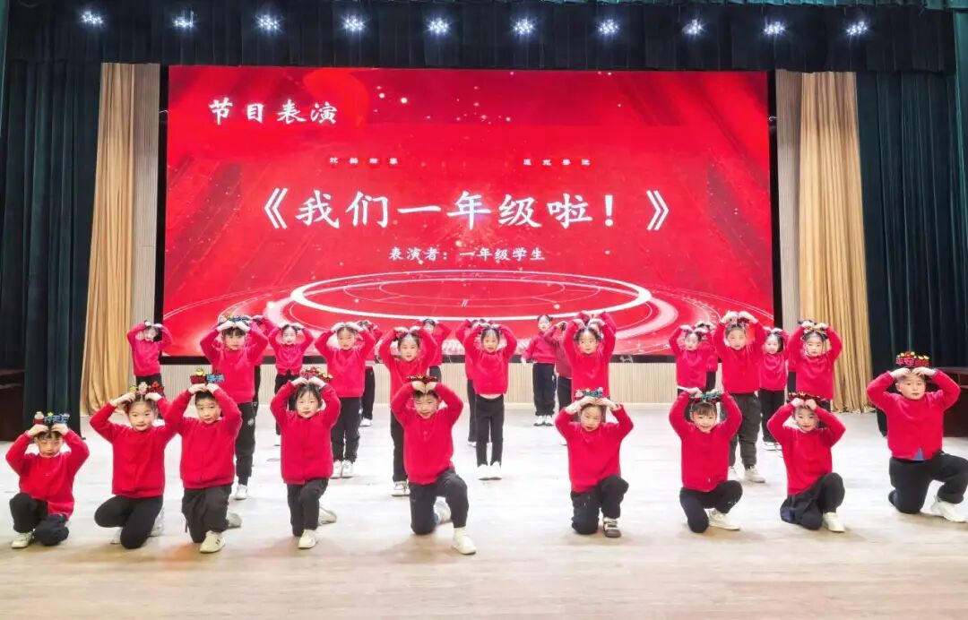 一年级的孩子们迈着稚嫩、轻快的步伐,充满活力地表演了精彩的歌舞《我们一年级啦》。