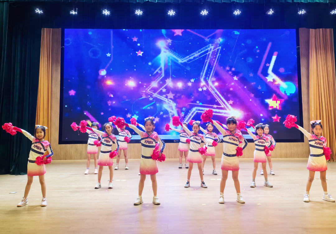 活力四射的啦啦操《宝贝优先》,展现了三年级同学的活泼和热情,赢得了观众的热烈掌声。