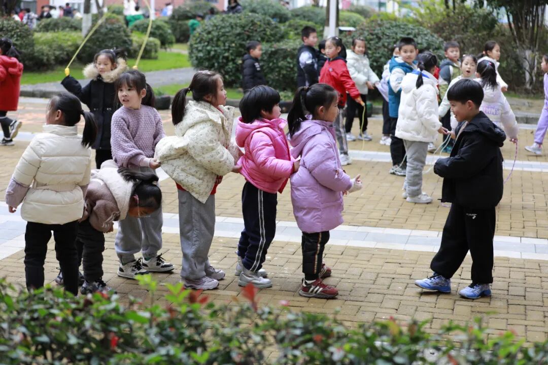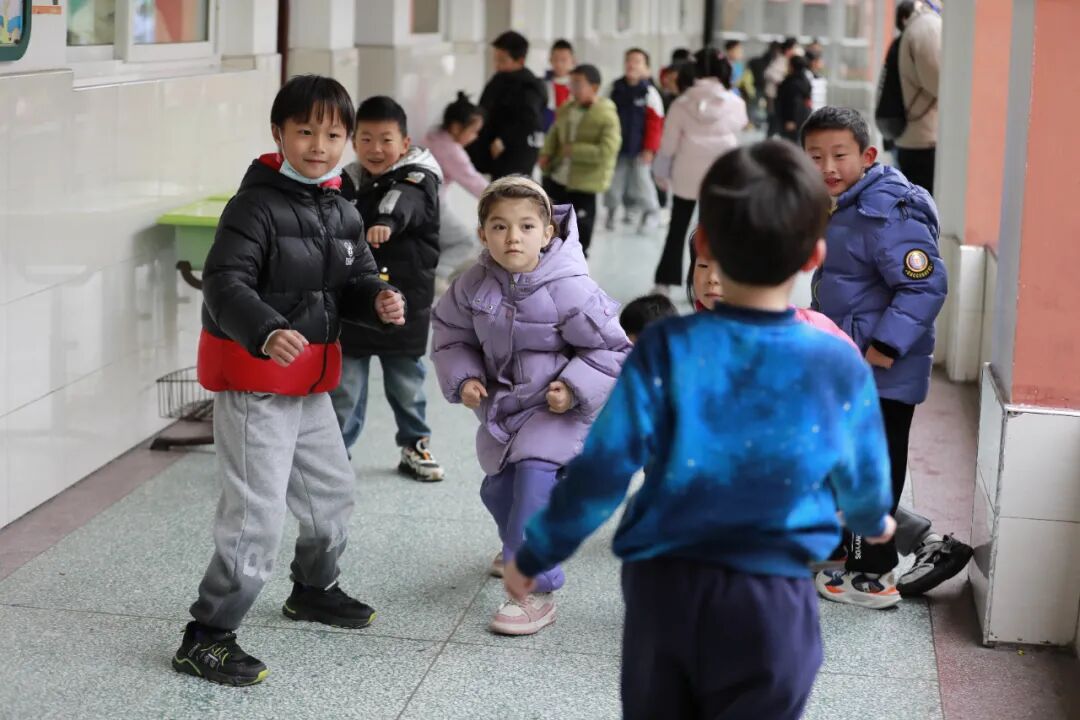 伴随着清脆的下课铃声响起,梅村实验小学的操场、走廊、通道到处都是孩子们快乐的身影。益智类、体能类、游戏类等活动丰富多彩,充分展现了“和乐课间”的美好时光。