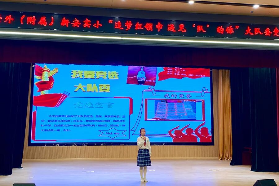 雅美剧场内气氛热烈,候选队员依次登台,或深情讲述自己的成长故事,或自信展现自己的才艺能力,或大胆呈现自己的创新思维......他们展现了新时代少先队员的风采,赢得了师生们的阵阵掌声。