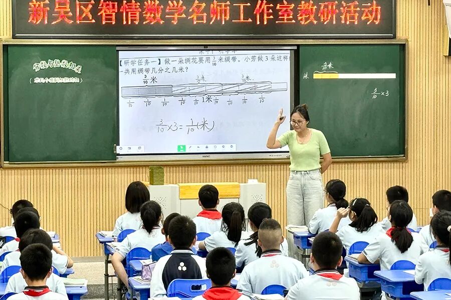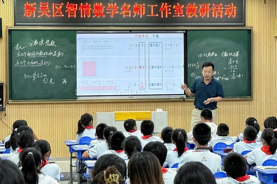 为贯彻落实义务教育新课程标准,深化小学数学改革,提高数学教师的课堂教育教学水平,2024年9月23日,新吴区小学数学新课标新课堂教学研讨,暨智情数学工作室活动在世外(附属)新安实小举行。江苏省特级教师、新吴区小学数学研训员朱春雷,智情数学工作室成员、世外(附属)新安实小的全体数学教师参加本次活动。
