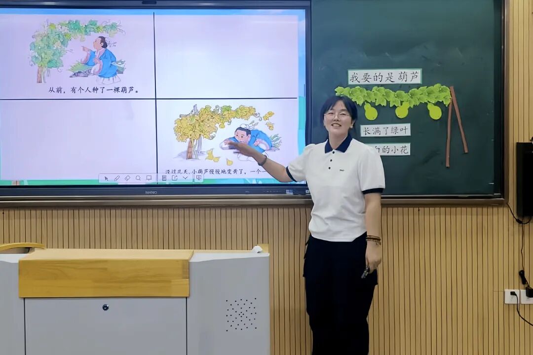 庄卫平老师执教的是二年级上册《我要的是葫芦》一课。她以生为本,教学设计切合低年级学生特点。“师生共创连环画”的学习任务及优美的葫芦丝演奏音乐,充分激发学生兴趣。学生在轻松愉悦的学习氛围中走进文本、学用语言,不仅感受到了葫芦的变化,更积累了鲜活的语言。