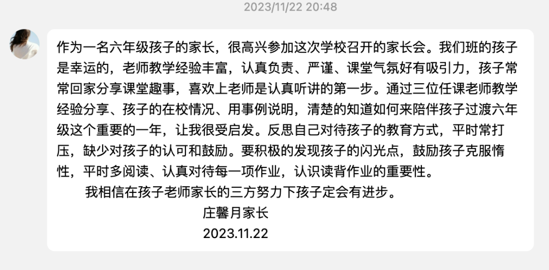 再次感谢老师的辛苦付出,我们的孩子一定会在成长的道路上越走越远。让我们一起努力,给孩子们创造一个更美好的未来!