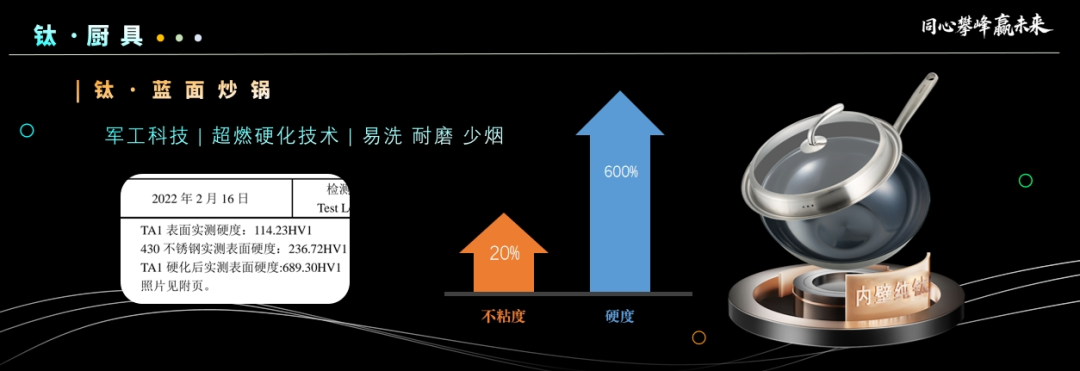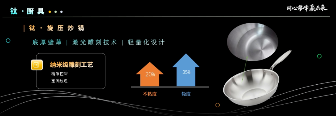 在钛餐厨领域,荣电集团凭借其技术优势和产品创新能力,已然成为高端厨具市场的标杆品牌。本次大会发布的钛蓝面炒锅、钛旋压炒锅等产品,宛如烹饪界的“神器”,通过热传导优化、纳米级雕刻工艺、超燃硬化等先进技术,在保留“钛”独有特性的同时,不仅大幅提升了炒锅表面的硬度与抗刮性,还能极大程度地保留食物的原始风味与营养。