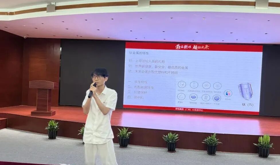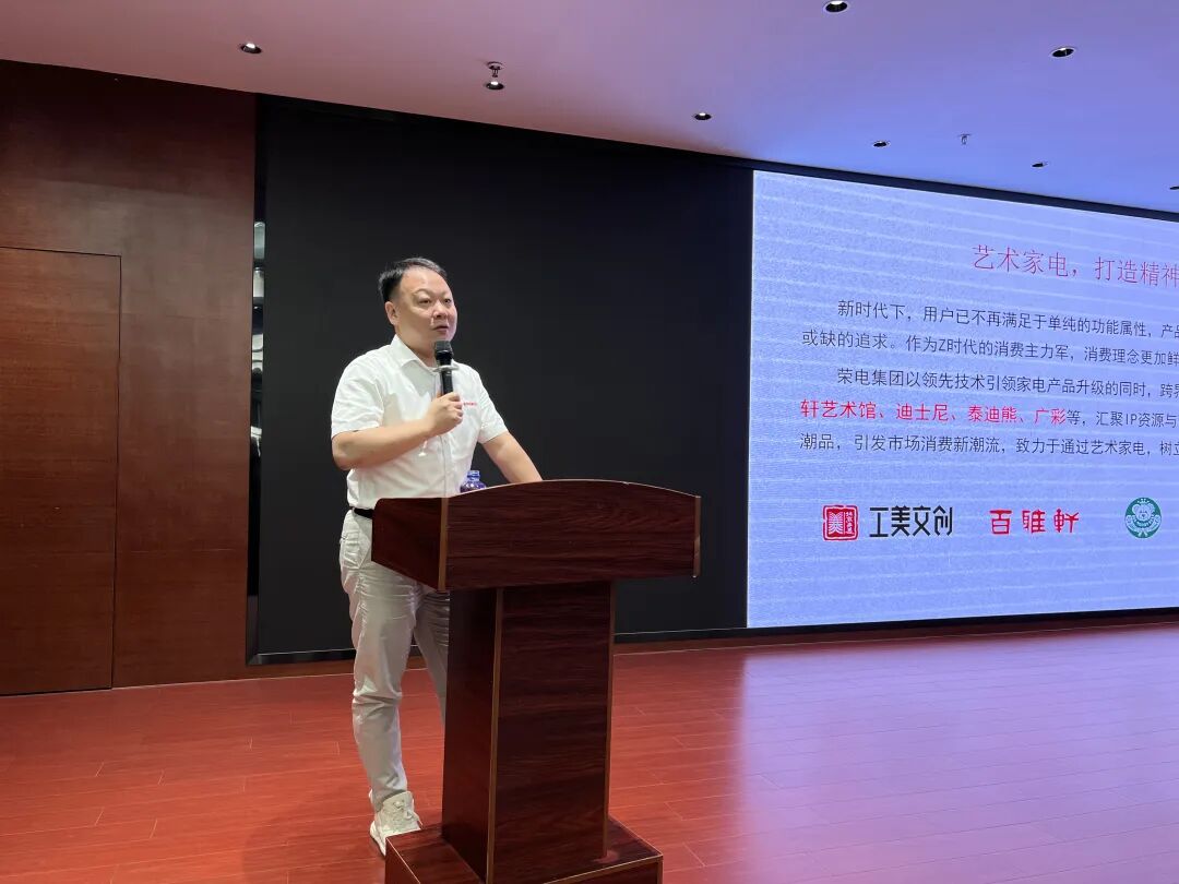 荣电集团南方价值链中心副总经理黄刚给学员着重培训了荣电集团在智能家电领域、钛金属民品化的取得显著成果。荣电集团以领先技术引领家电产品升级,在产品领域,与跨界合作北京工美集团、百雅轩、迪士尼、泰迪熊、广彩等,汇聚IP资源与营销理念,打造出国潮风系列潮品,用艺术家电打造人们的精神家园;在钛金属领域,创新推出了涵盖钛建材、钛家居、钛版画、钛家电、钛厨具和钛杯壶等六大领域的钛产品系列,上市产品总数超 300 款。